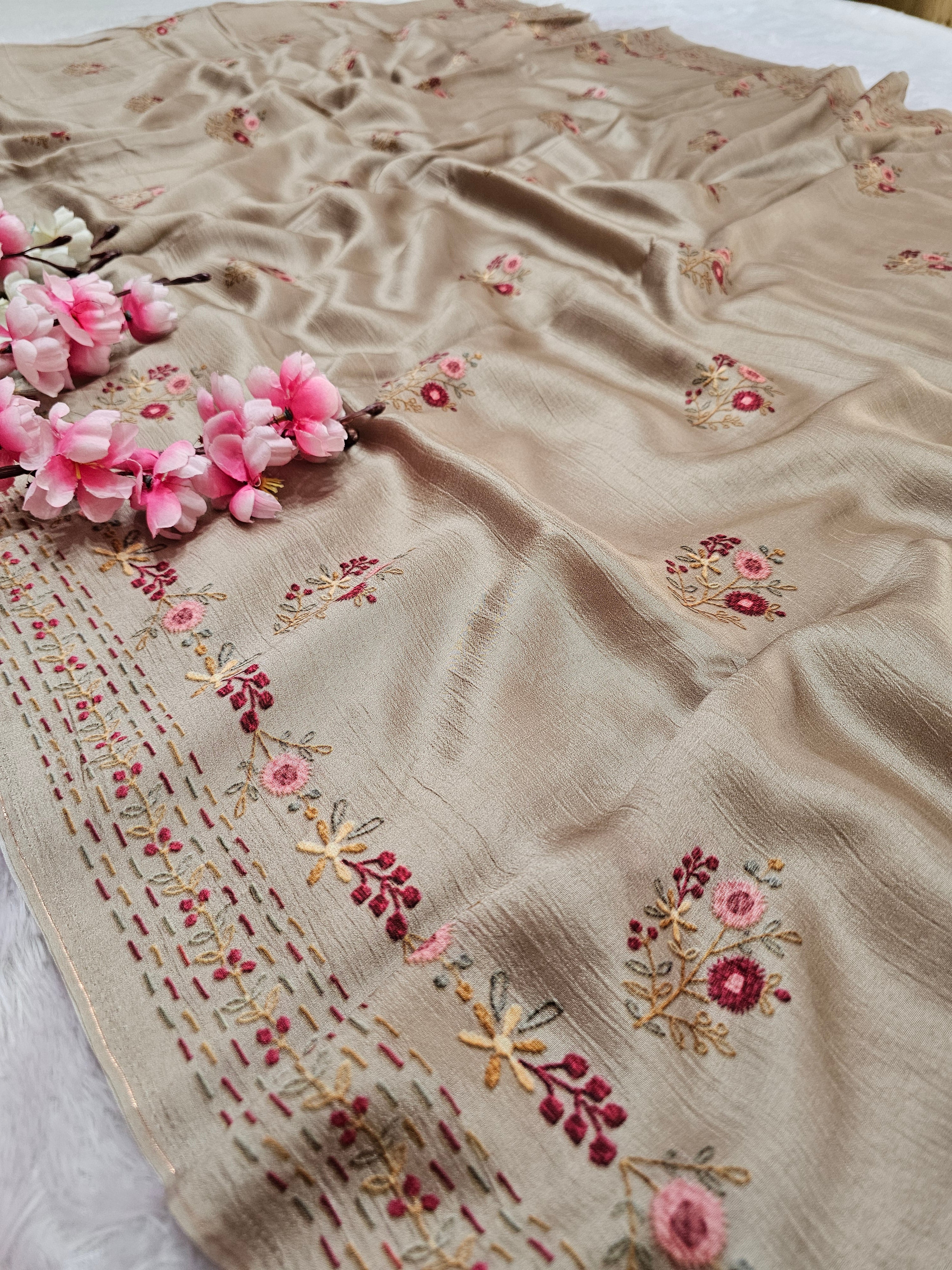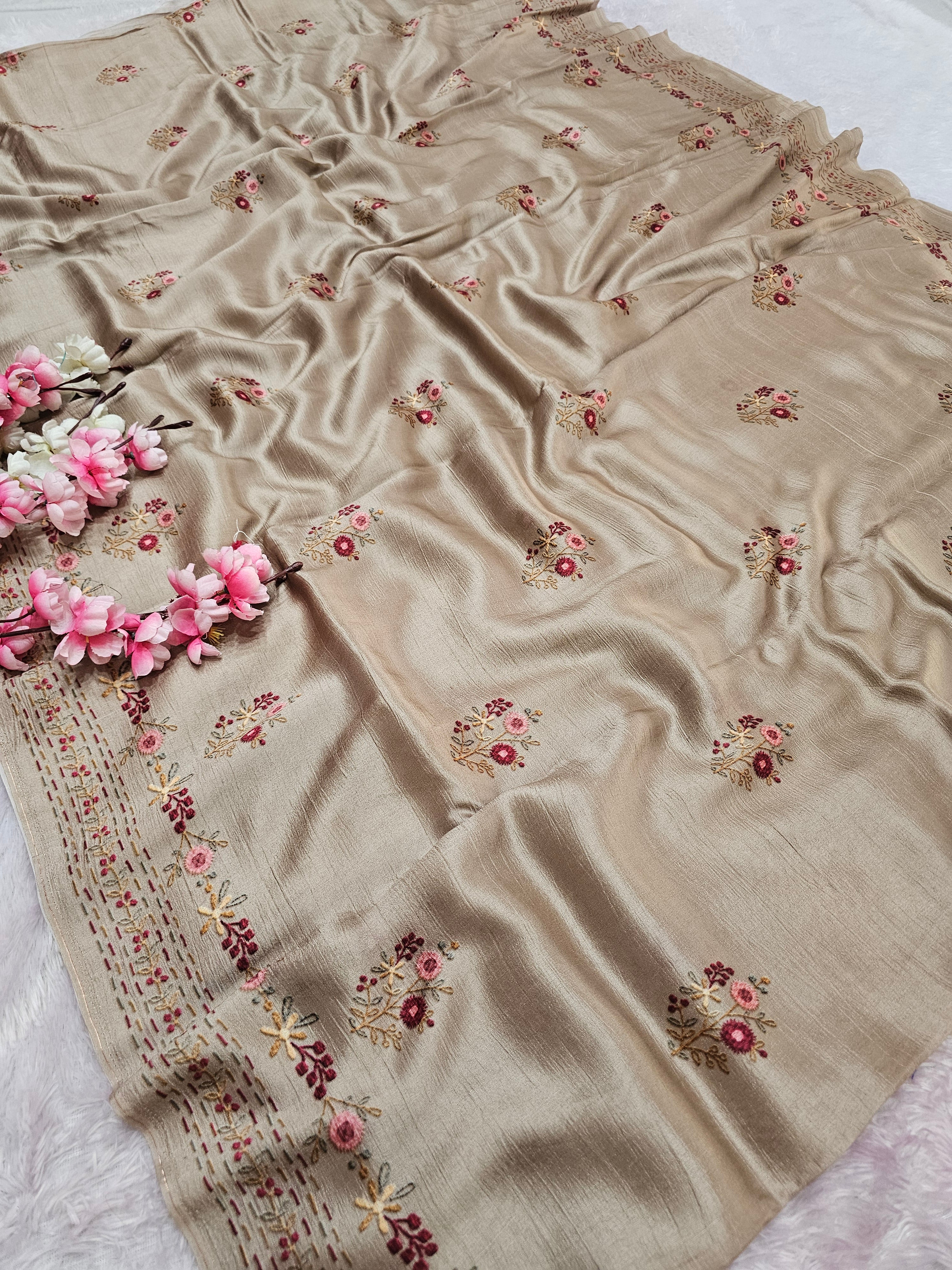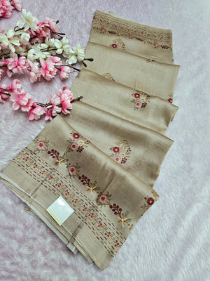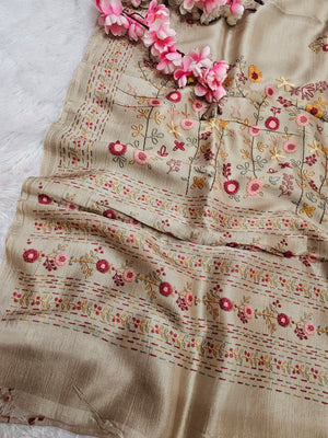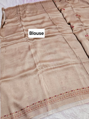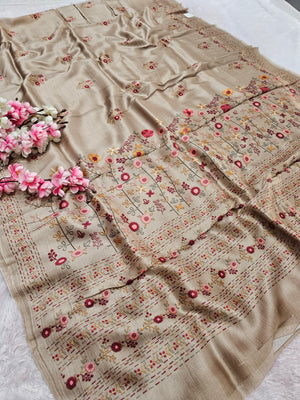 101004 Exclusive Pure Tusser Silk Traditional Flower Print Saree