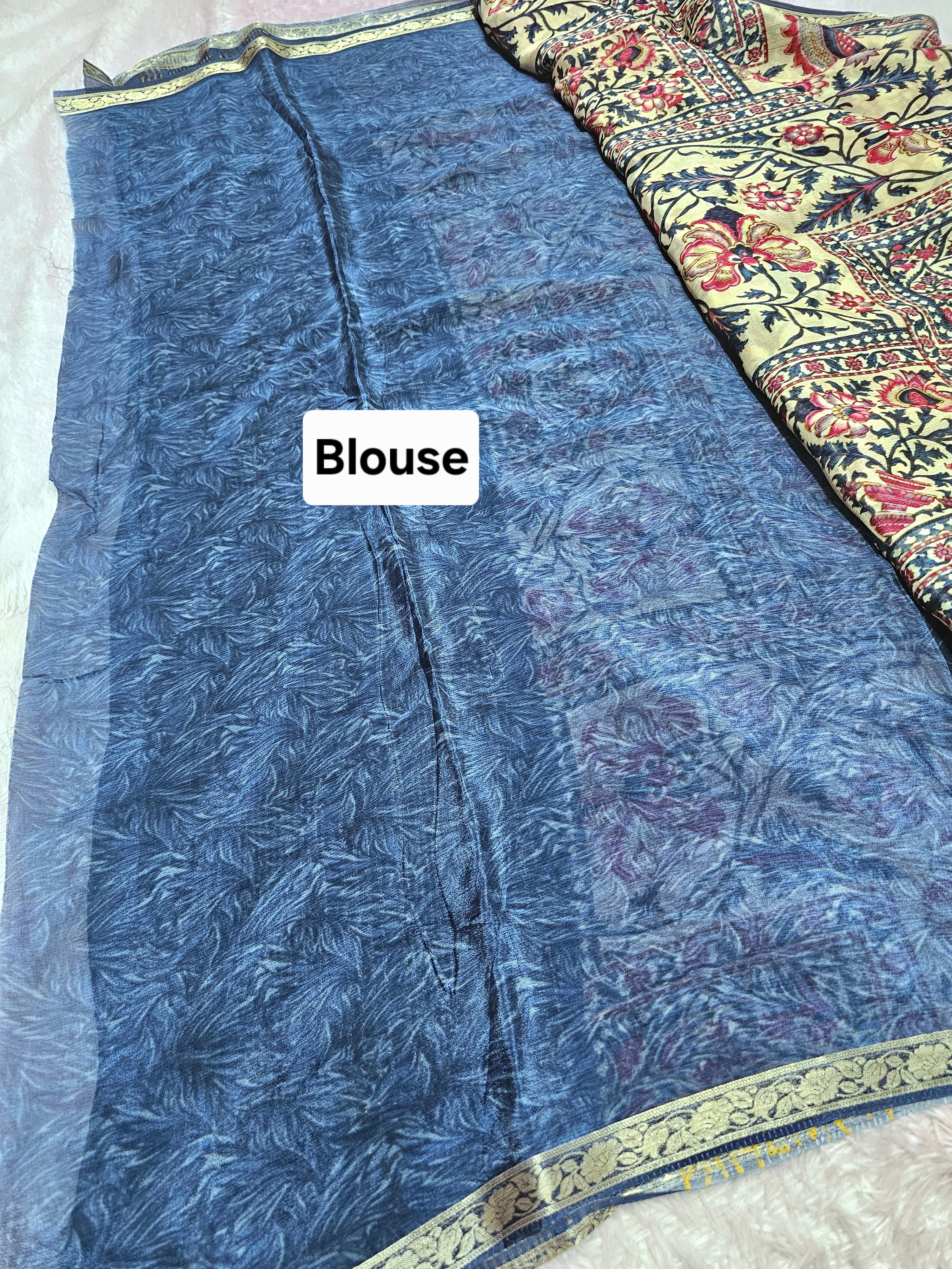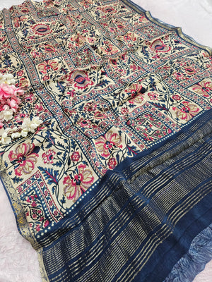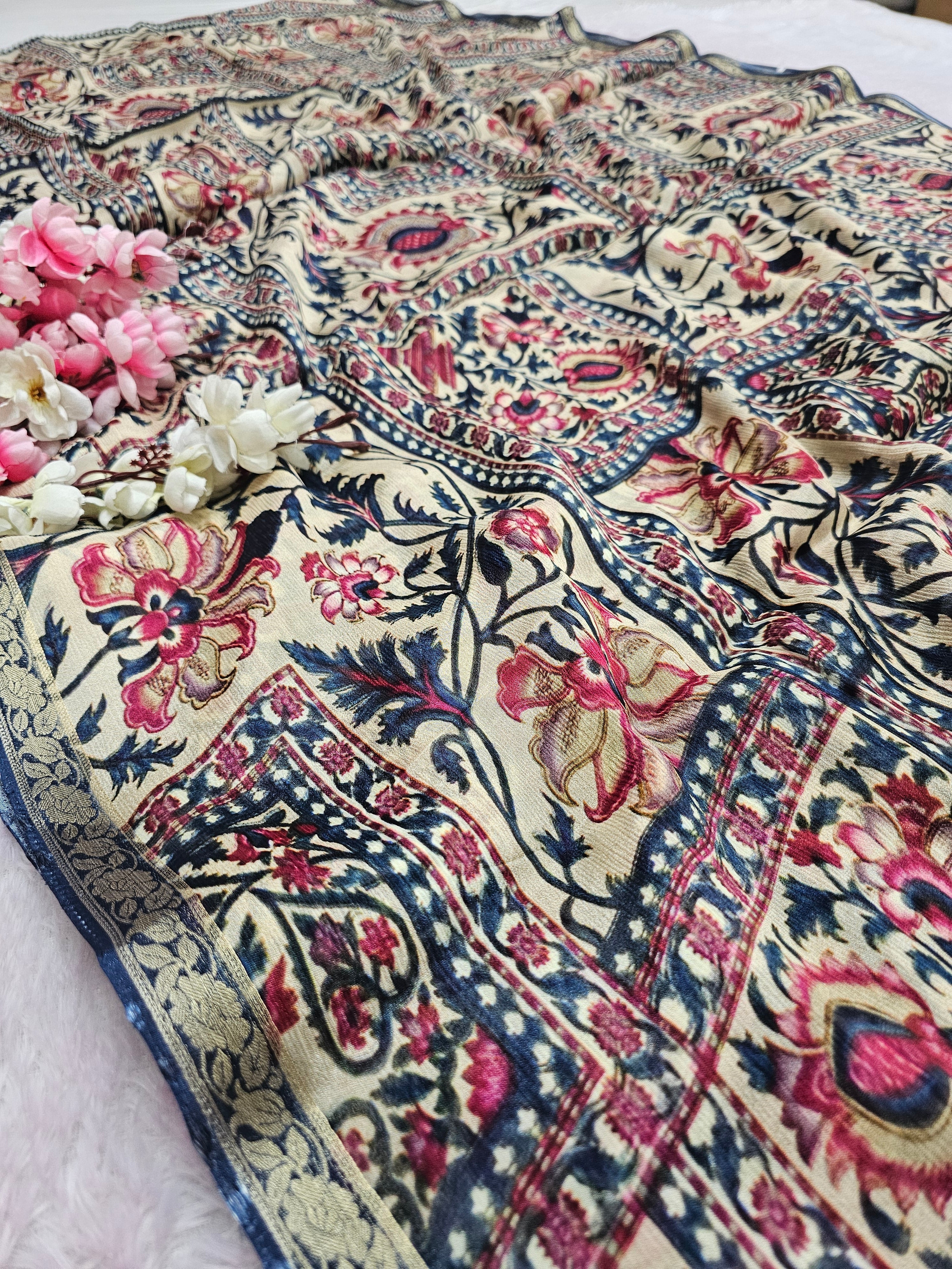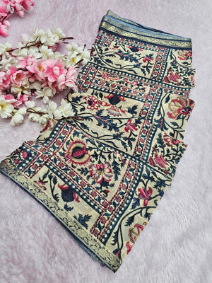 101006 Exclusive Pure Chinon Silk Traditional Flower Print Saree with Zari Weaving Border