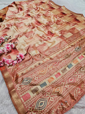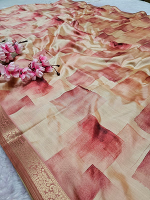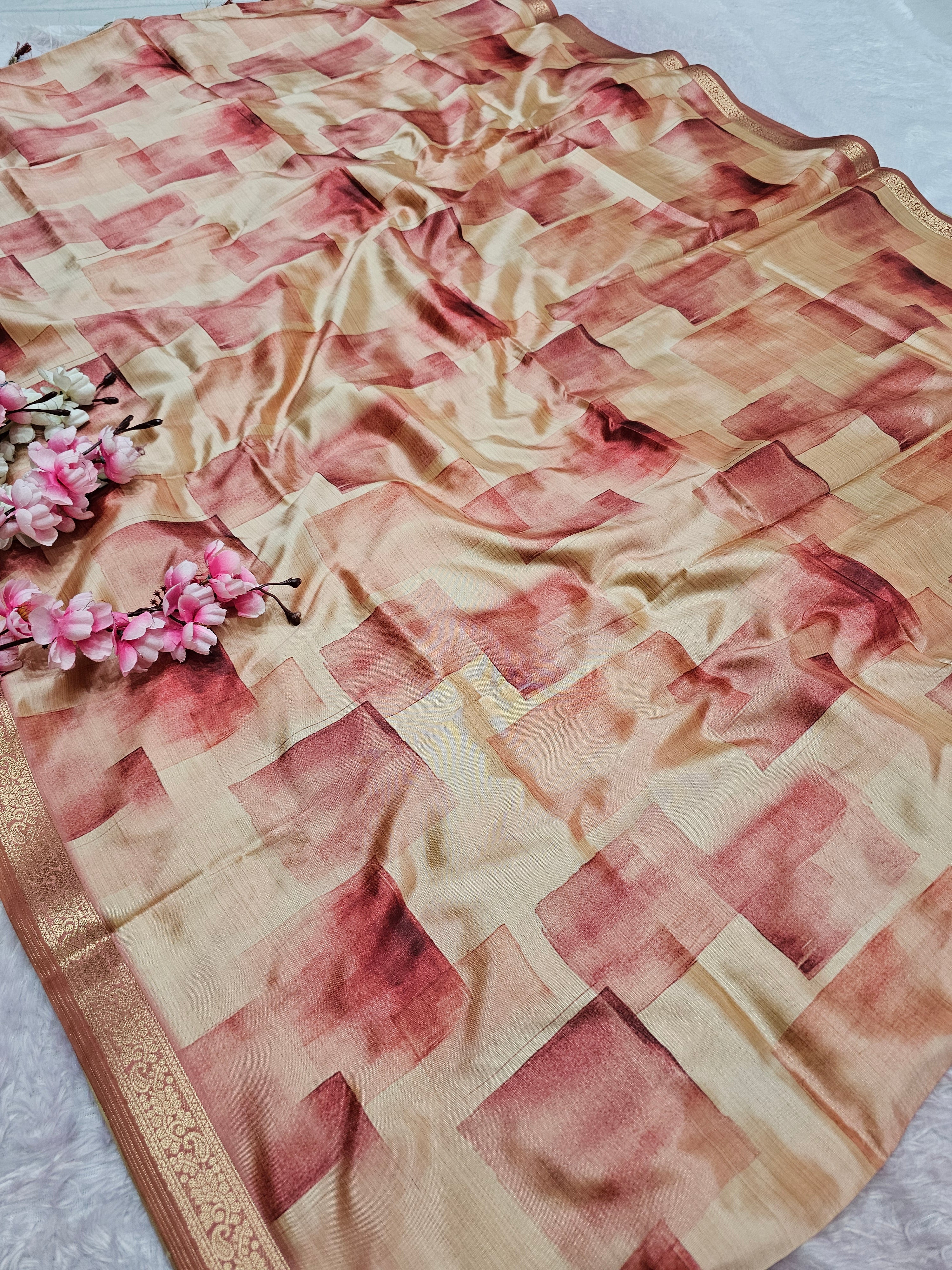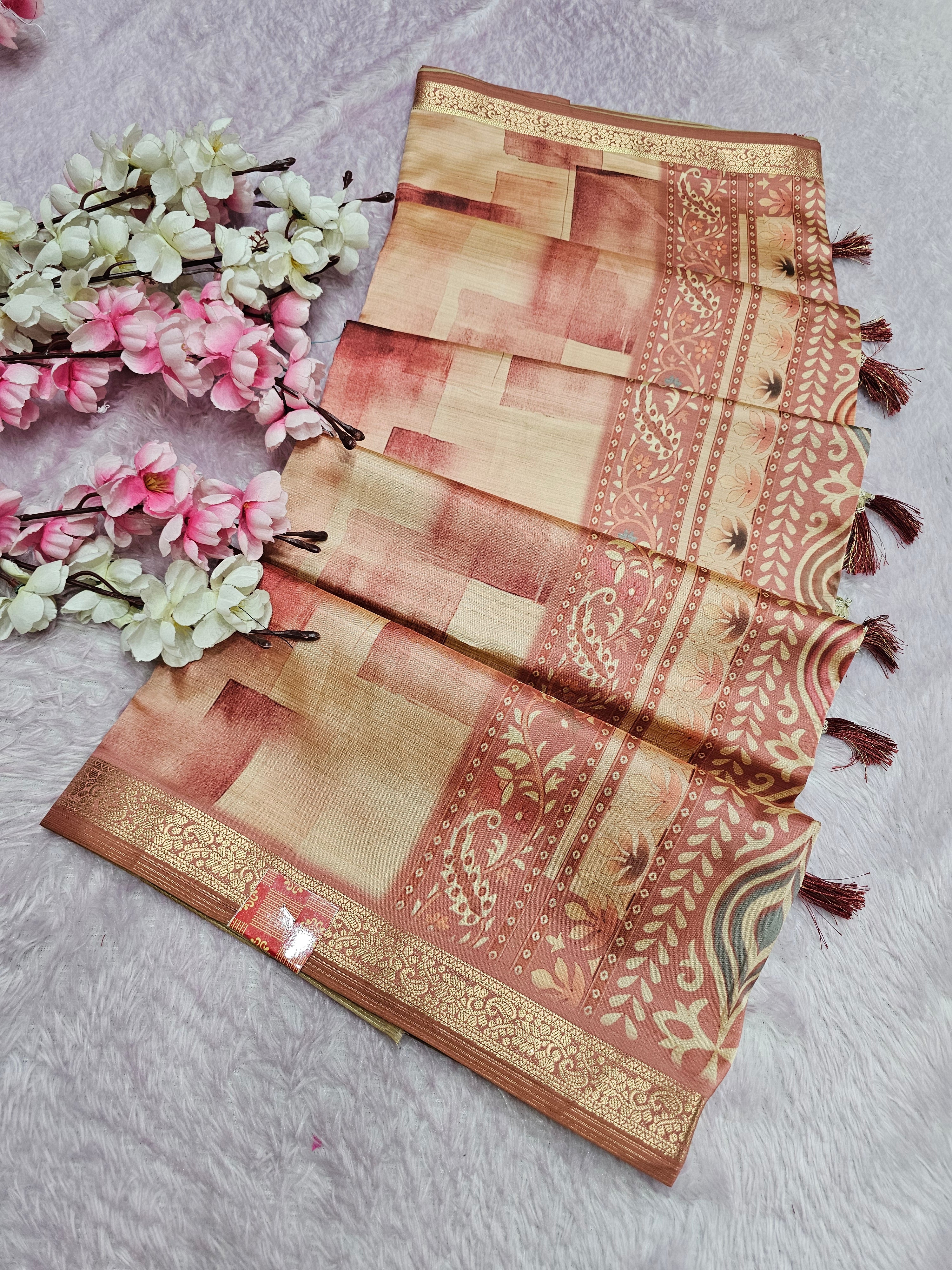 101108 Exclusive Very Soft Silk Printed Saree with Zari Weaving Border