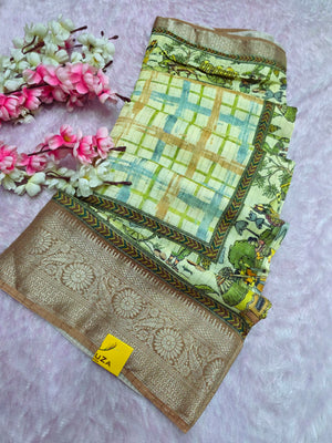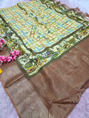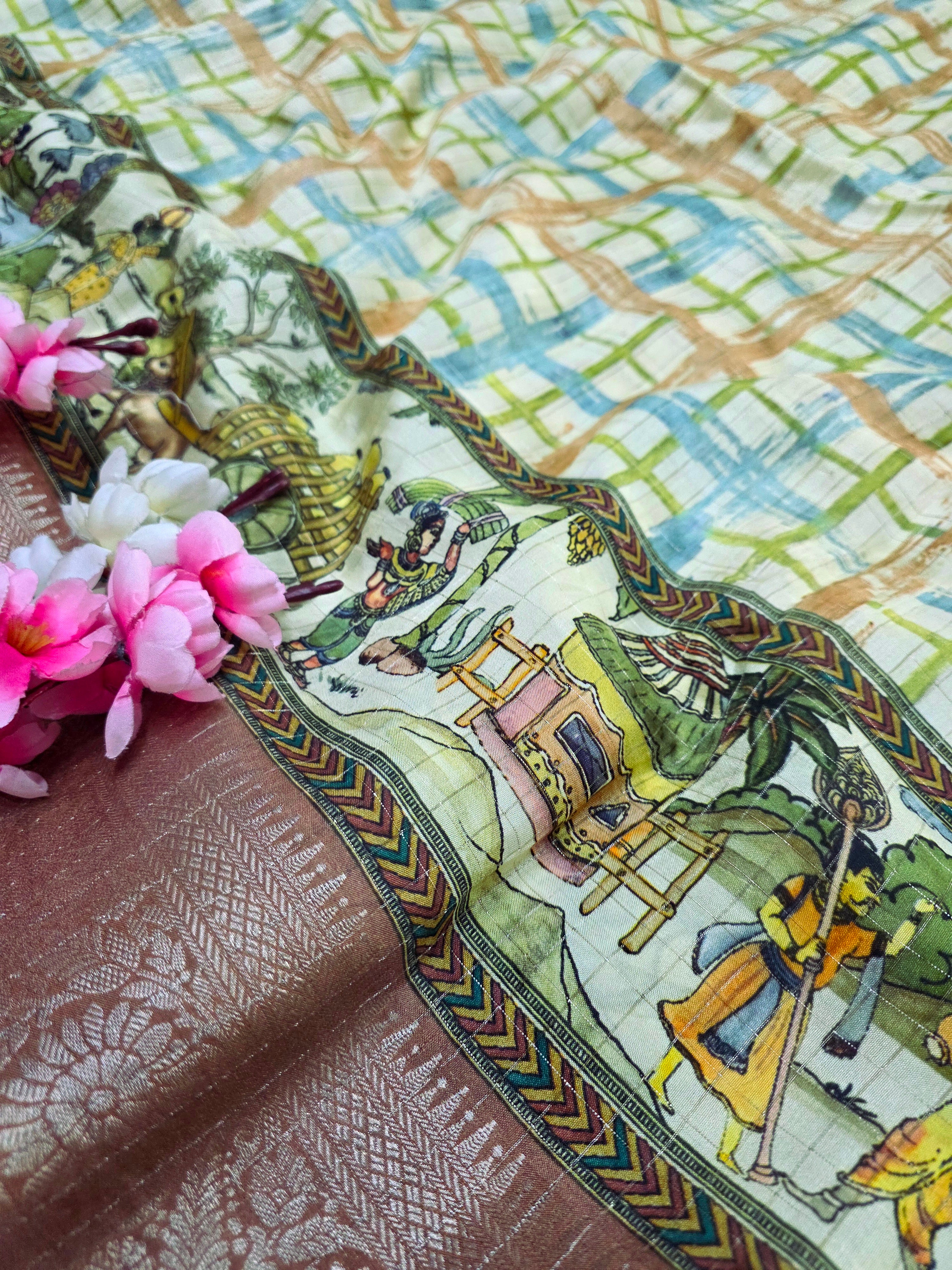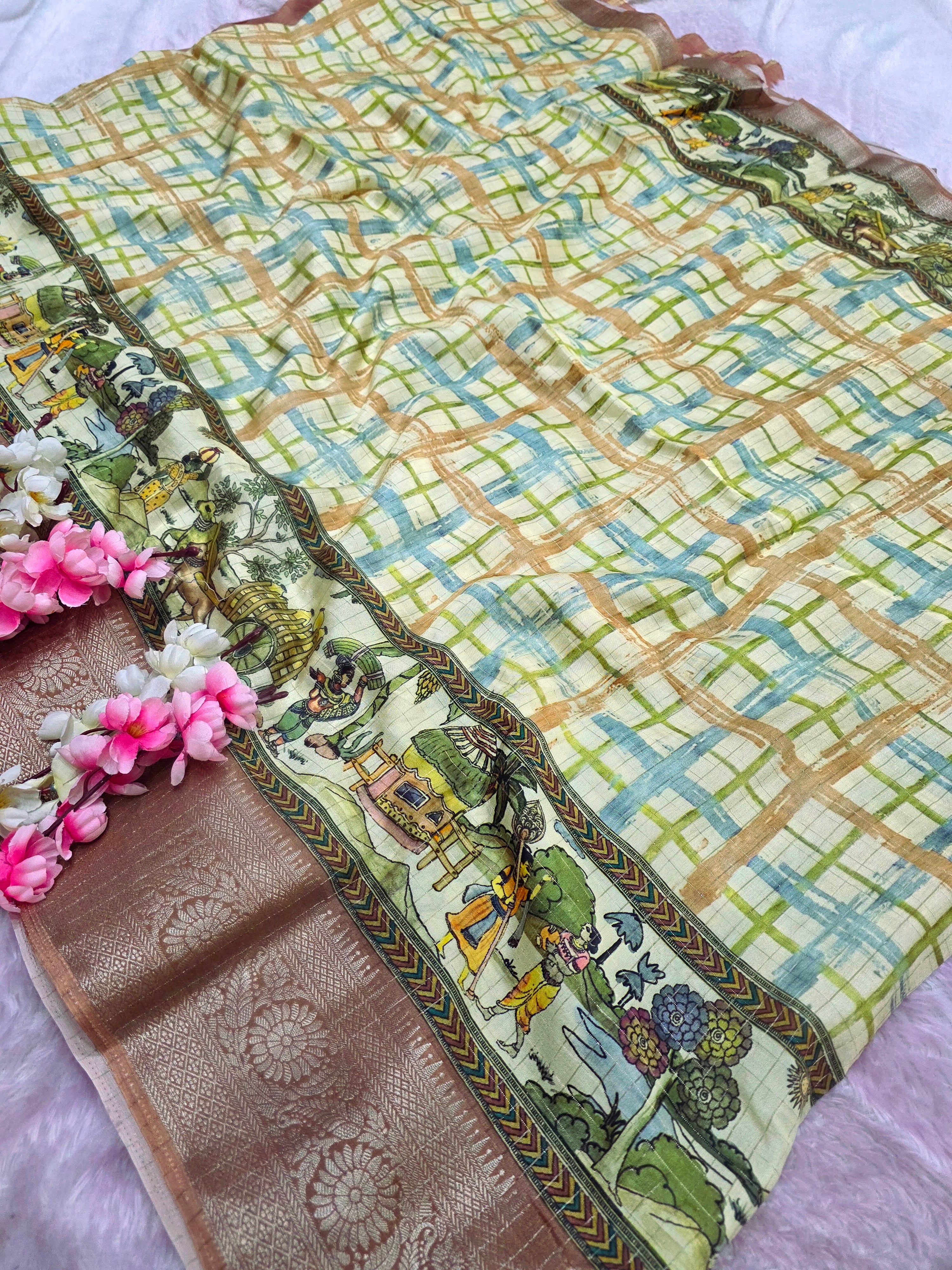 101204 Chitra Special Pure Viscose Silk Traditional Print Saree with Zari Small Checks