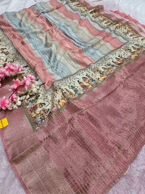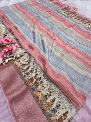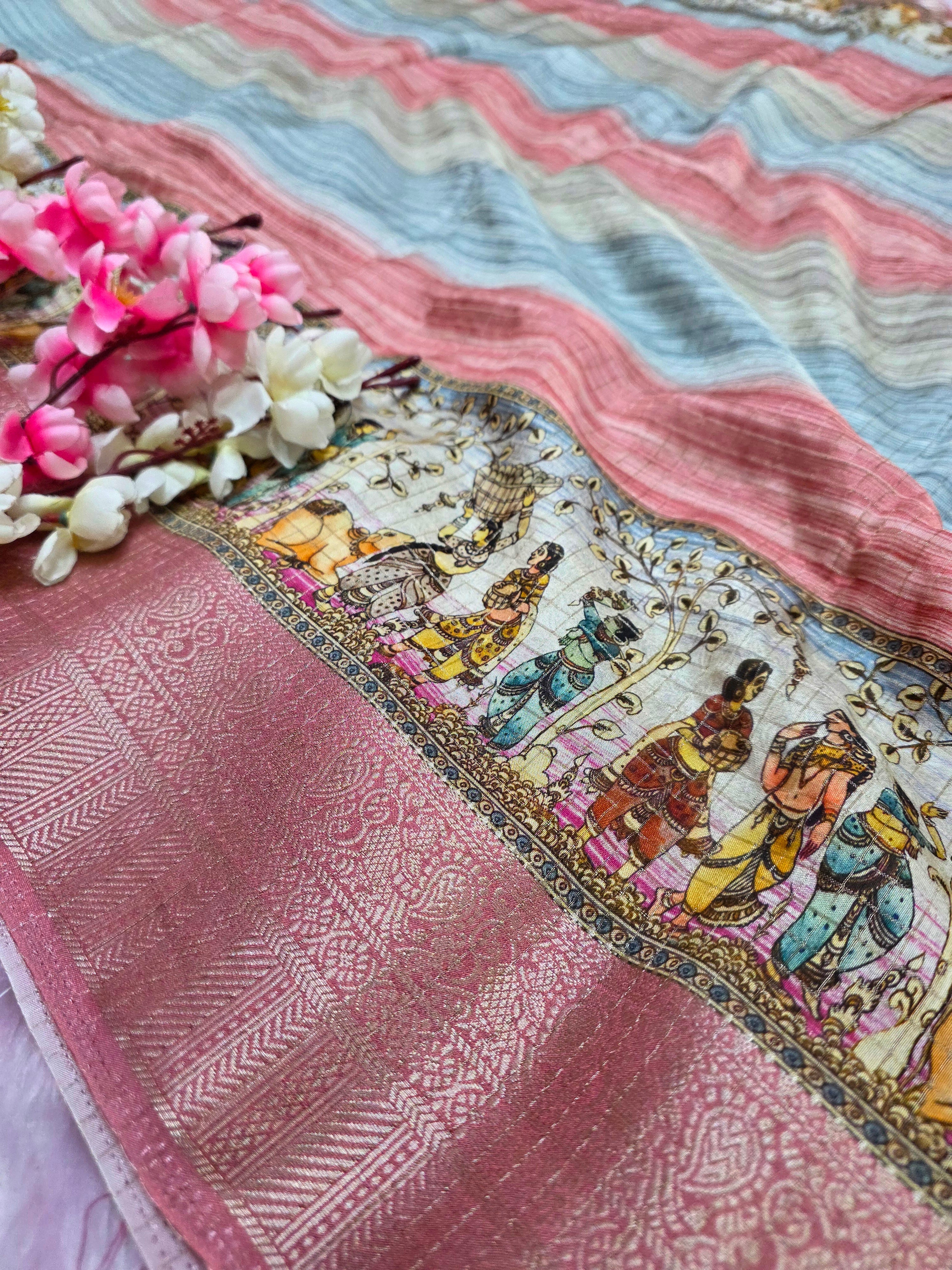 101207 Chitra Special Pure Viscose Silk Traditional Print Saree with Zari Small Checks