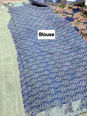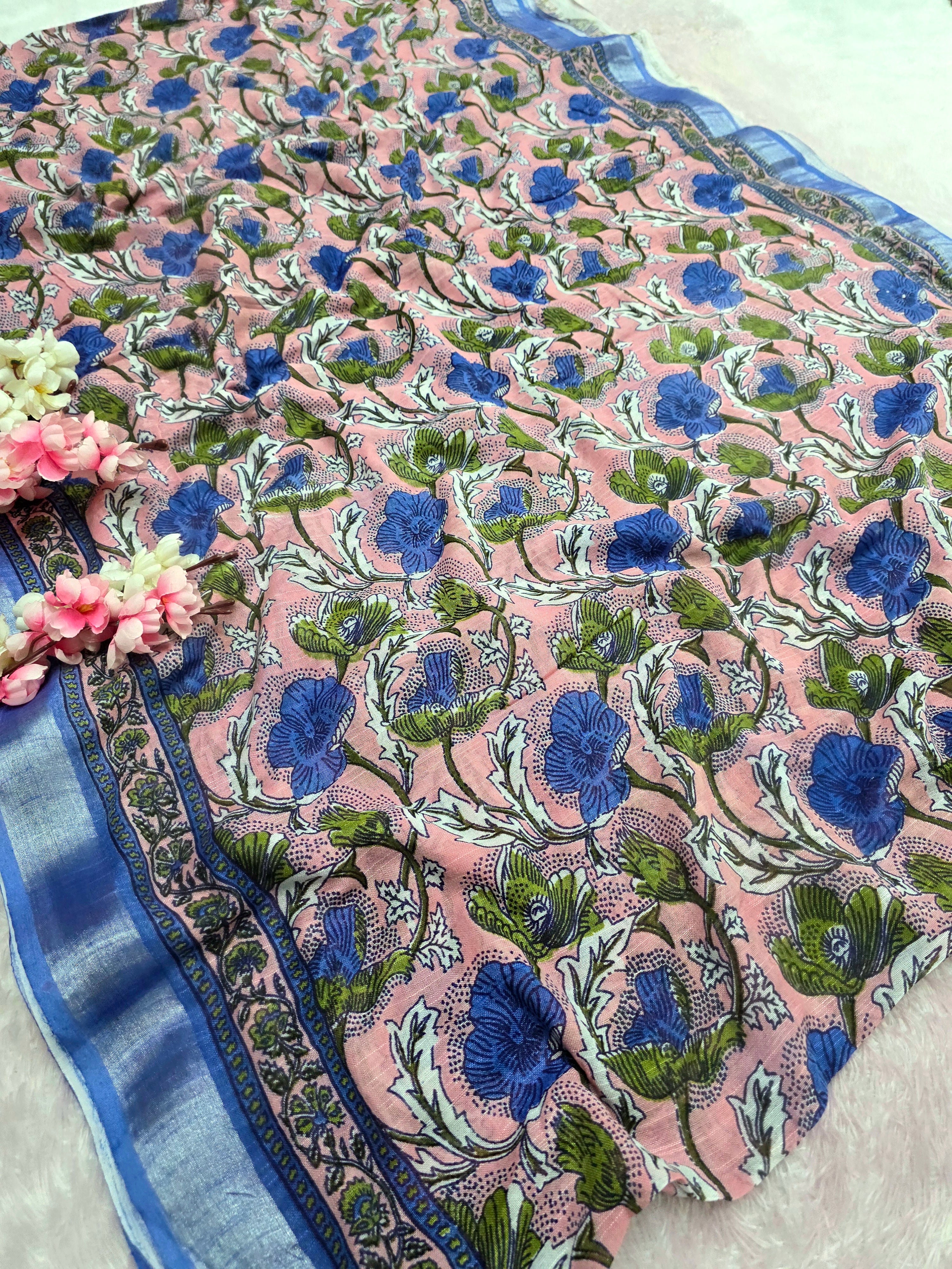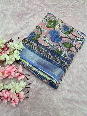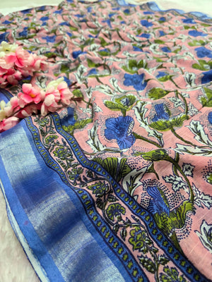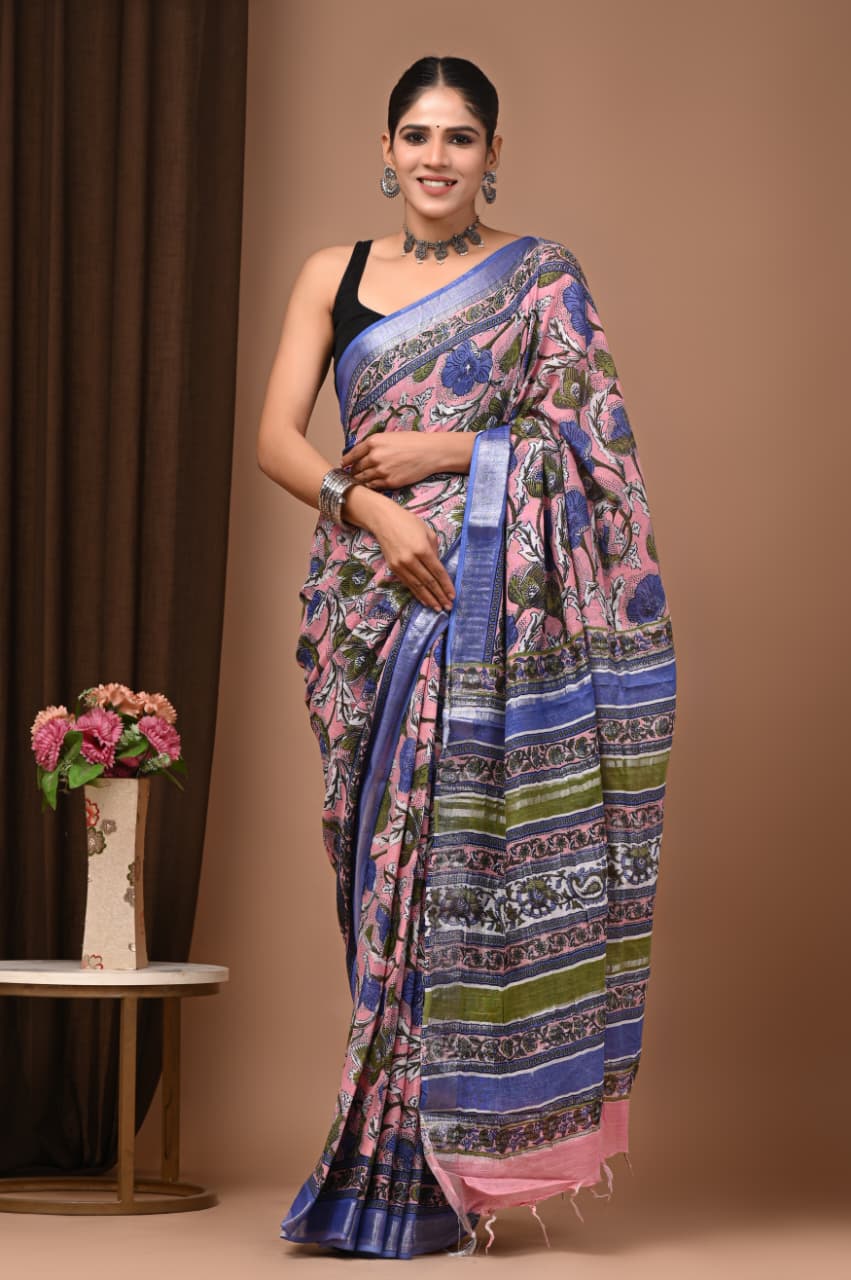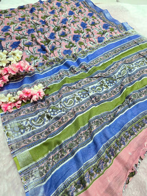 101405 Pure Rajasthani Natural Cotton Linen Hand Printed Saree