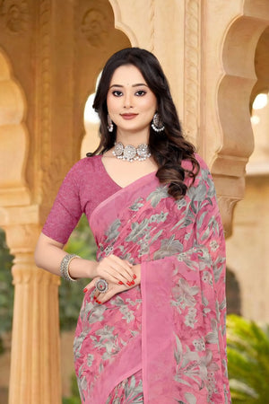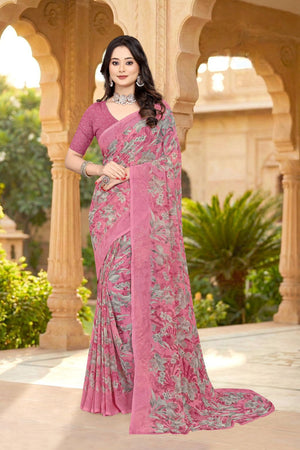 101906 Very Soft Heavy Georgette Flower Print Saree
