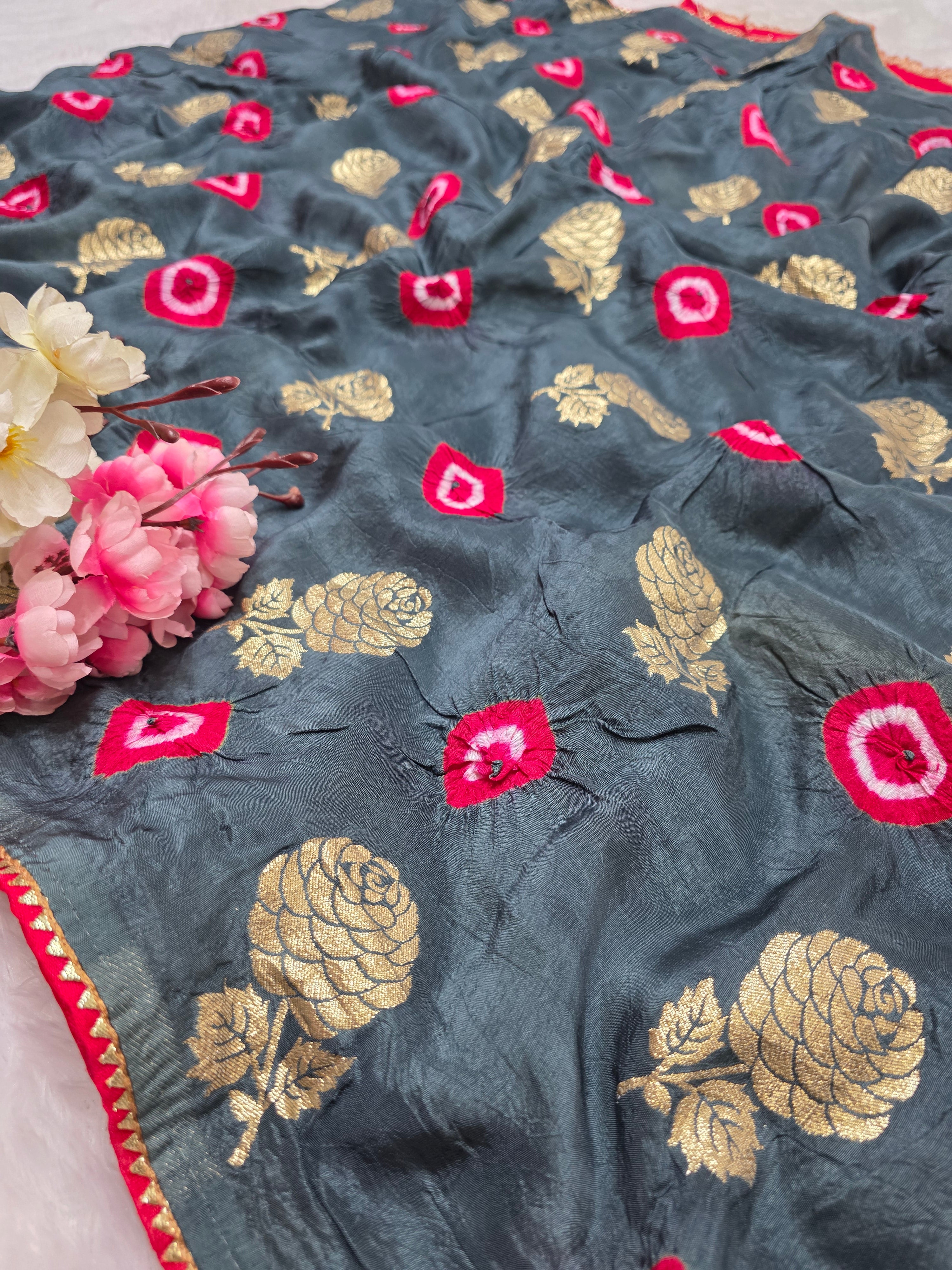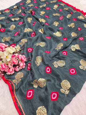 114005 Banarasi Bandhani Party Wear Saree - Gray