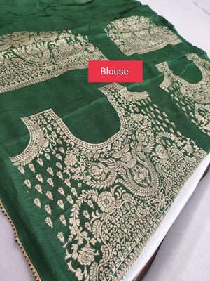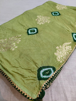 114005 Banarasi Bandhani Party Wear Saree - Green