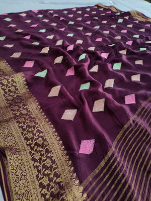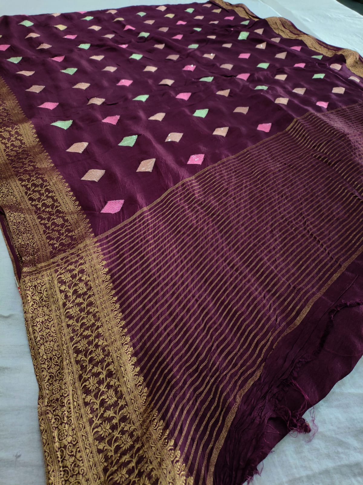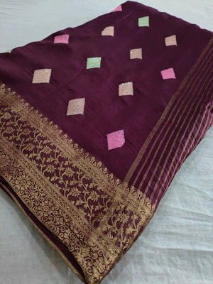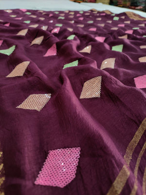 114007 Banarasi Sequence Party Wear Saree - Wine
