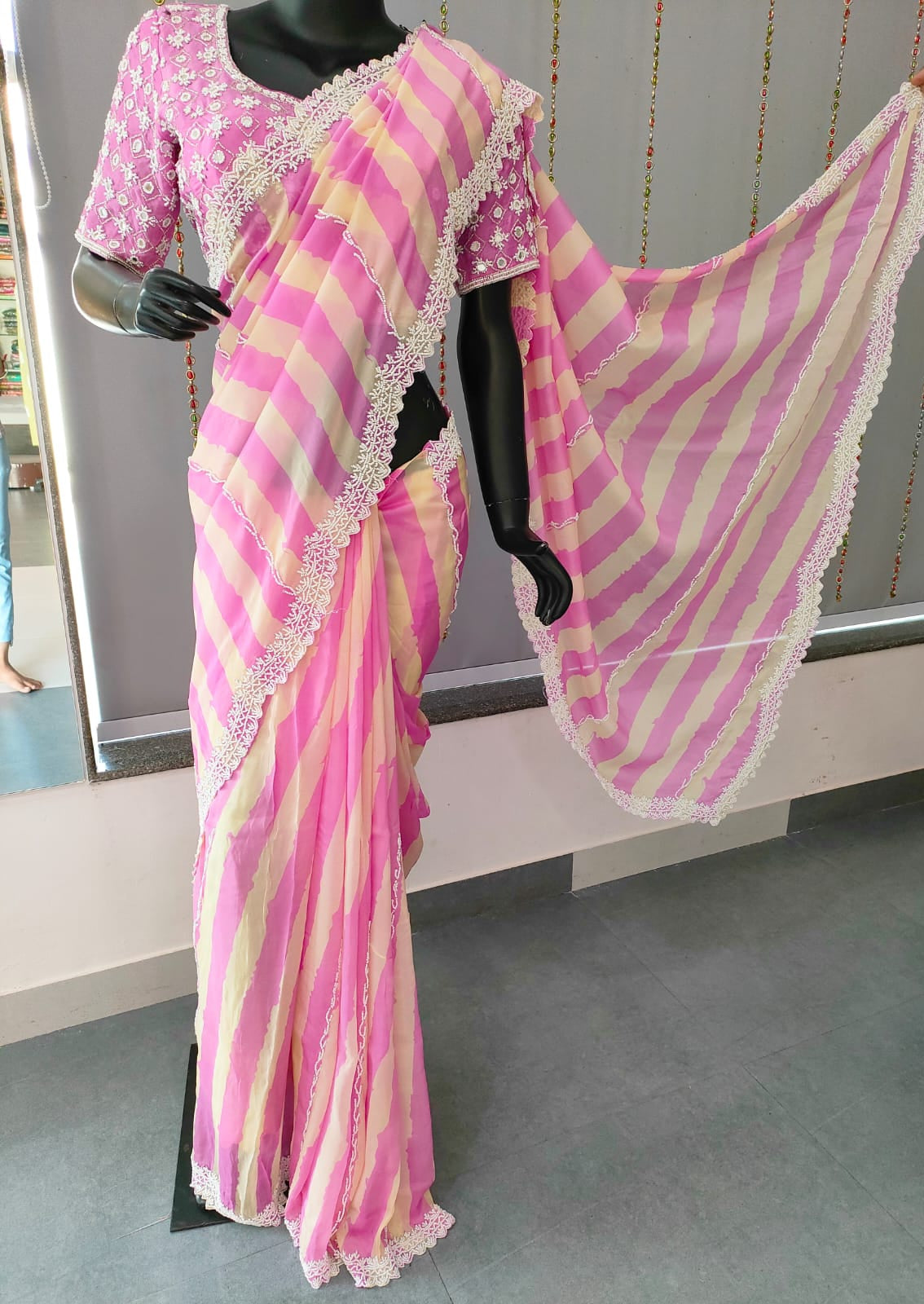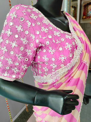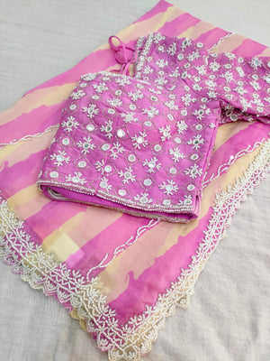 119002 Pink Strips Designer Saree with Blouse