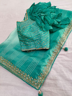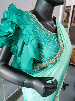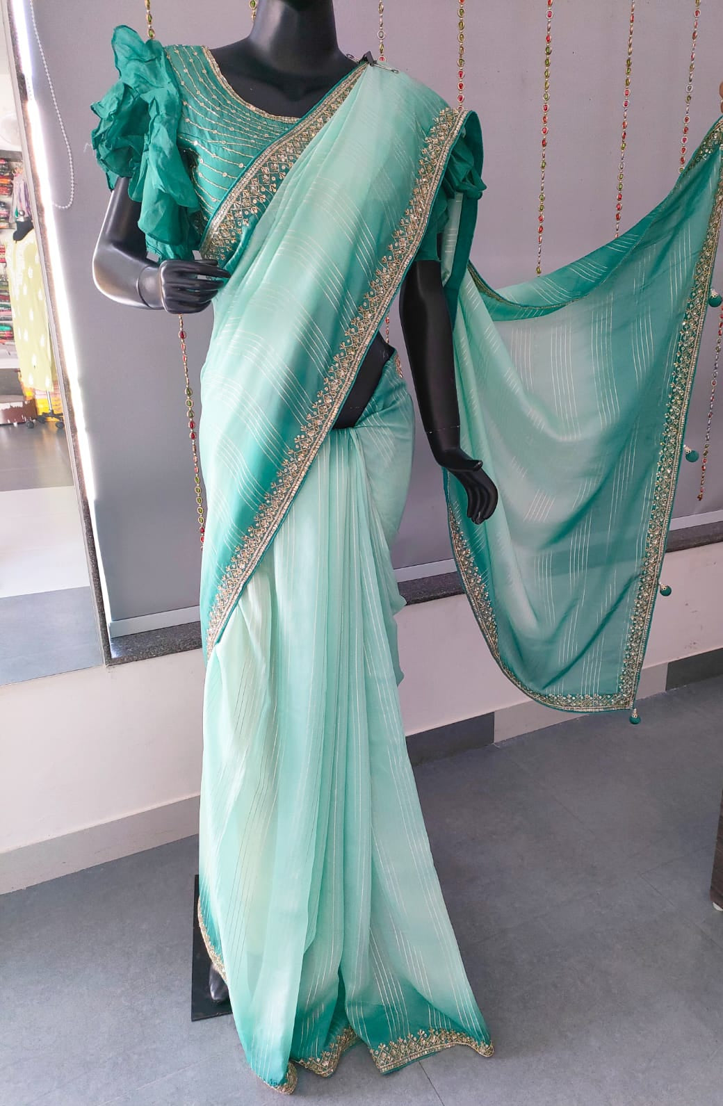 119004 Green Shaded Designer Saree with Heavy Blouse