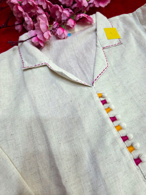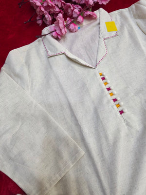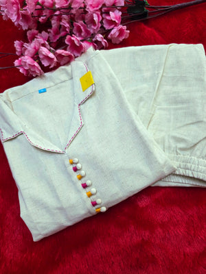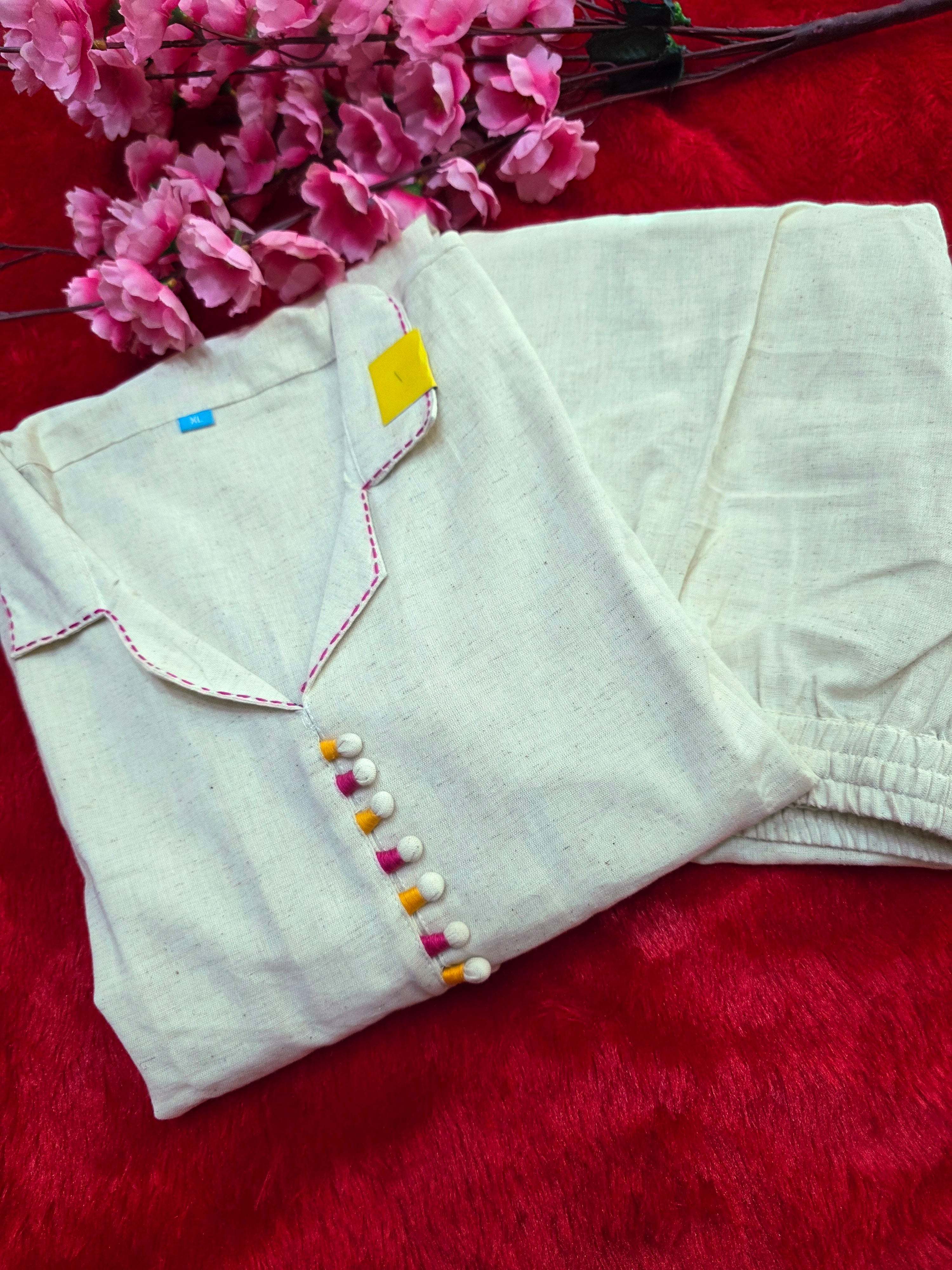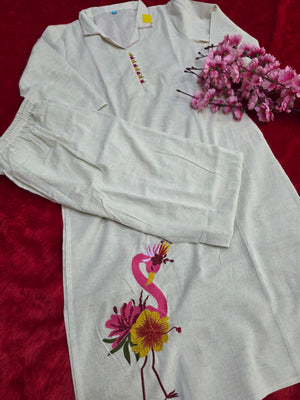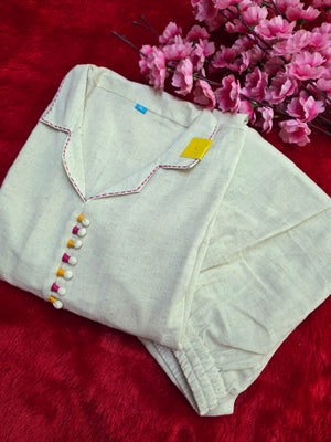 12164 Pure Natural Cotton Kurti With Embroidery Pant Set