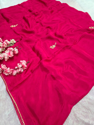 12459 Designer Pure Upada Silk Traditional Rajasthani Saree with Gota Patti Work - Rani
