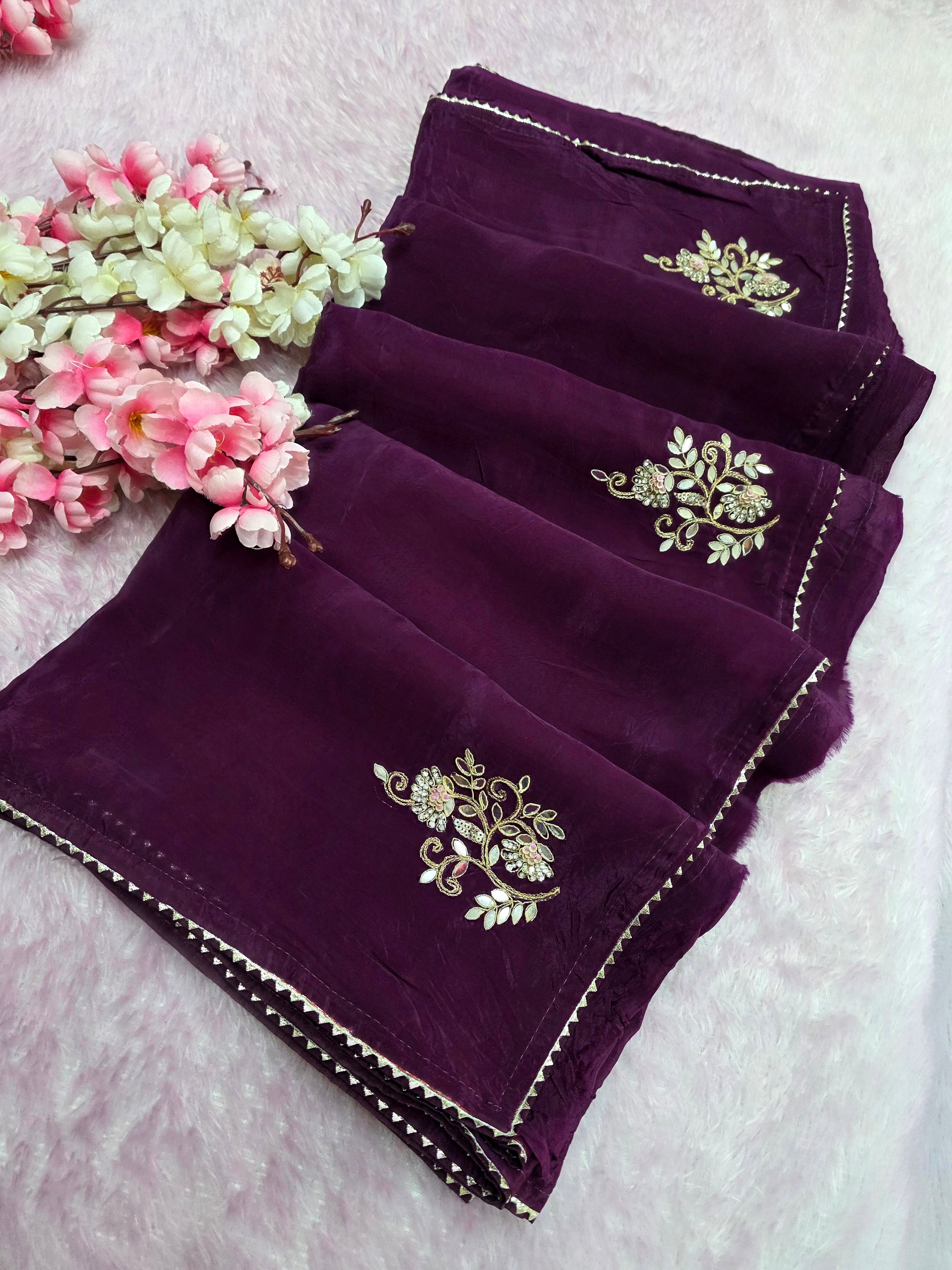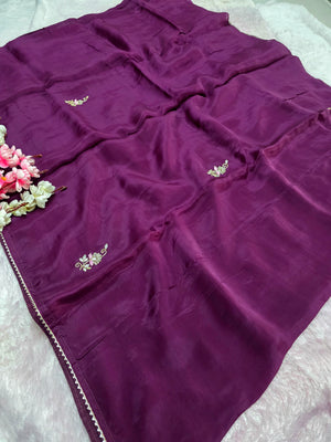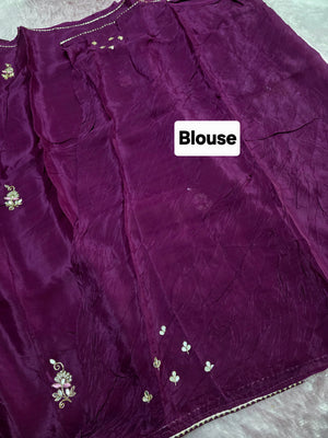 12459 Designer Pure Upada Silk Traditional Rajasthani Saree with Gota Patti Work - Purple