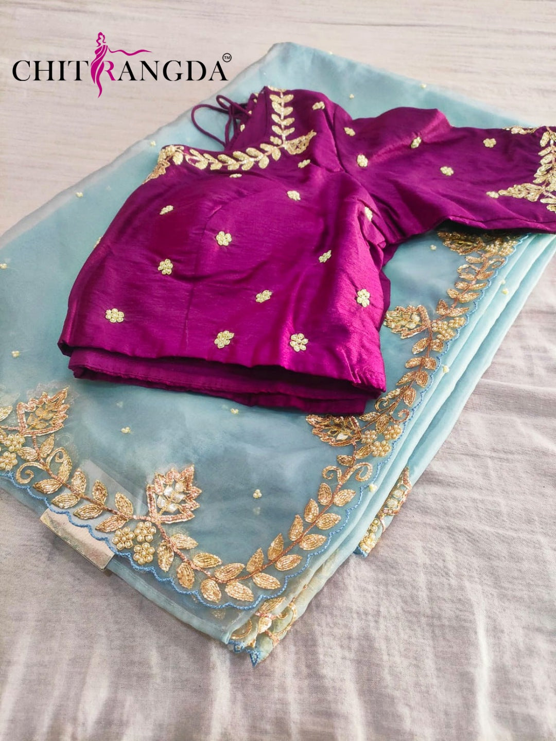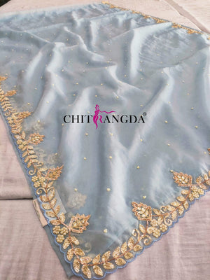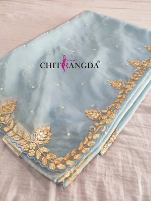 132005 Premium Organza Saree With Heavy Hand Work And With Stitch Blouse