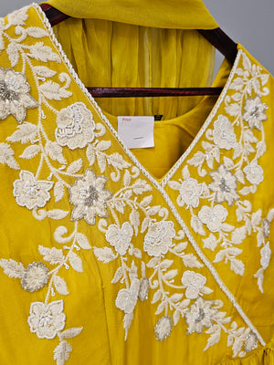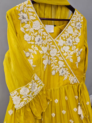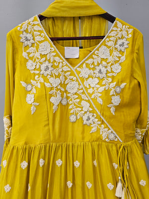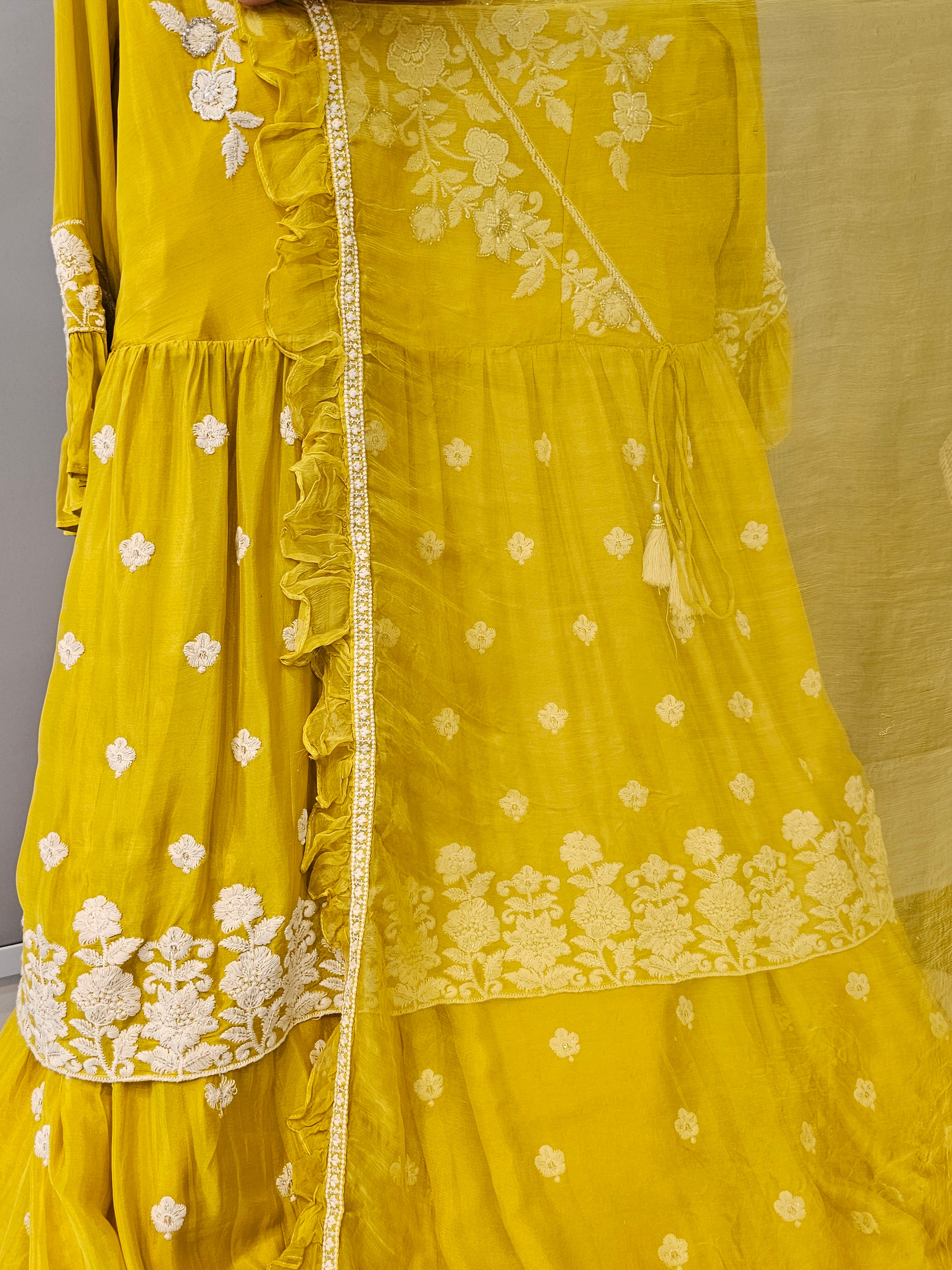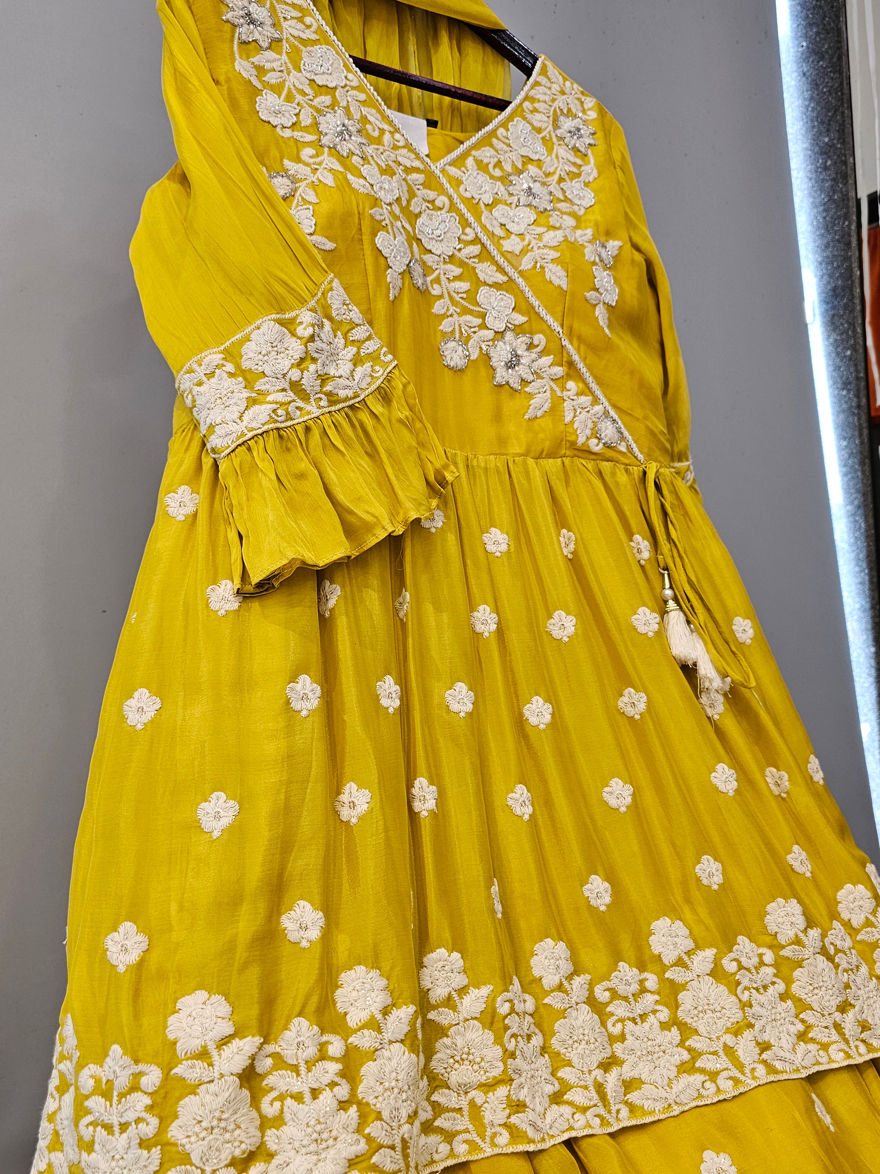 - Highlight : Premium Designer Paplum Style Lucknow Chikankari Work Dress With Skirt and Chiffon Dupatta
