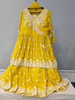 1322 Premium Designer Paplum Style Lucknow Chikankari Work Dress With Skirt and Chiffon Dupatta