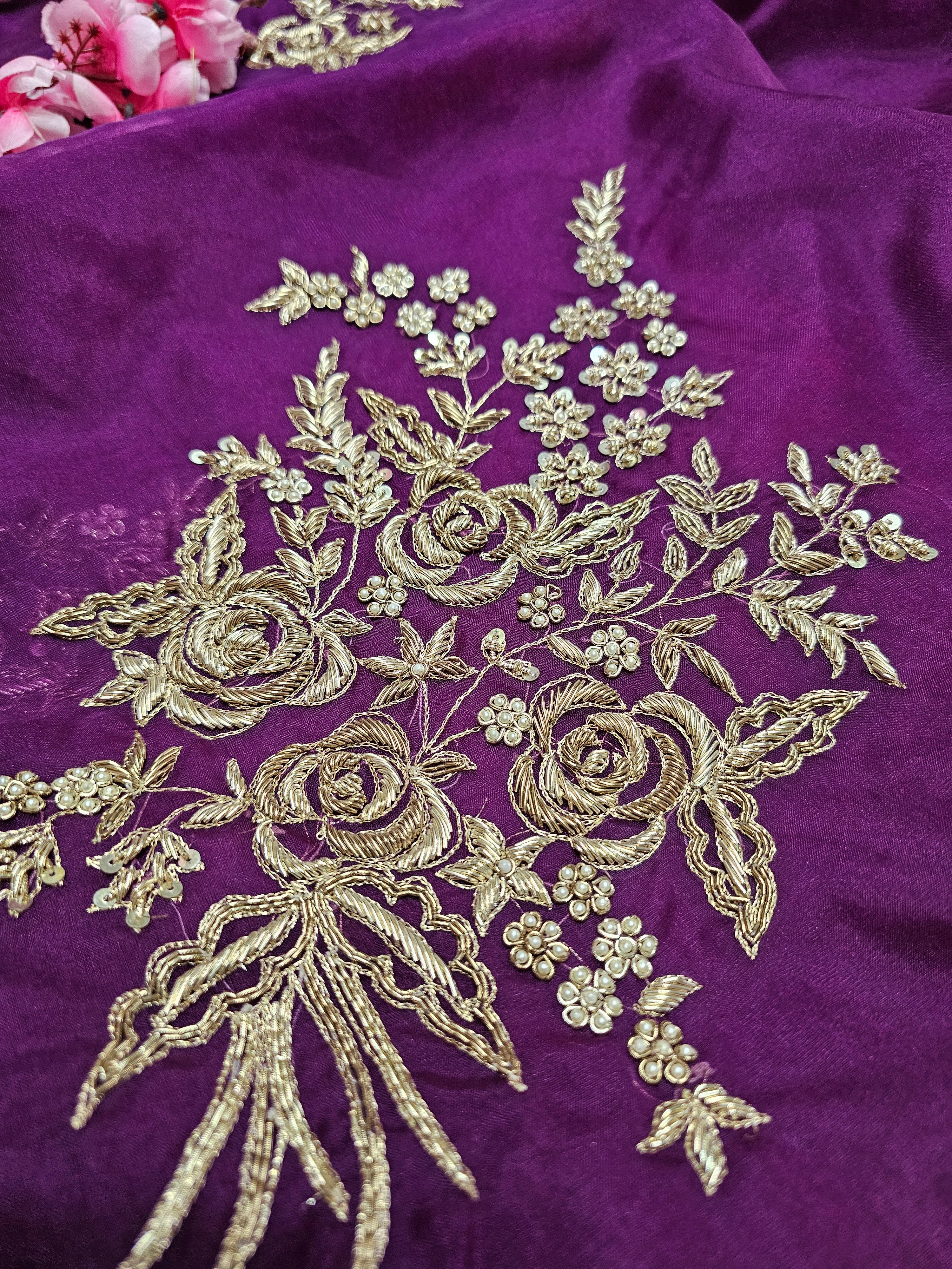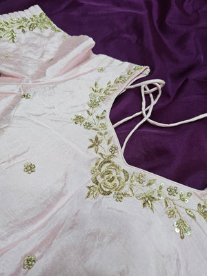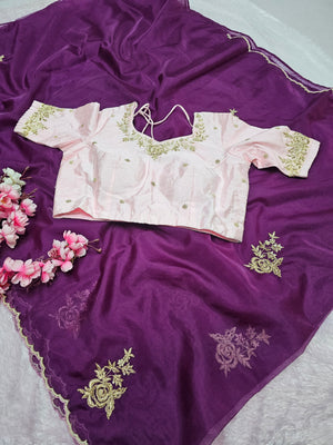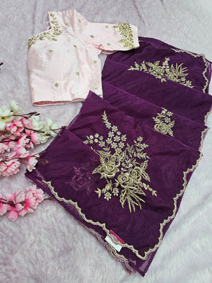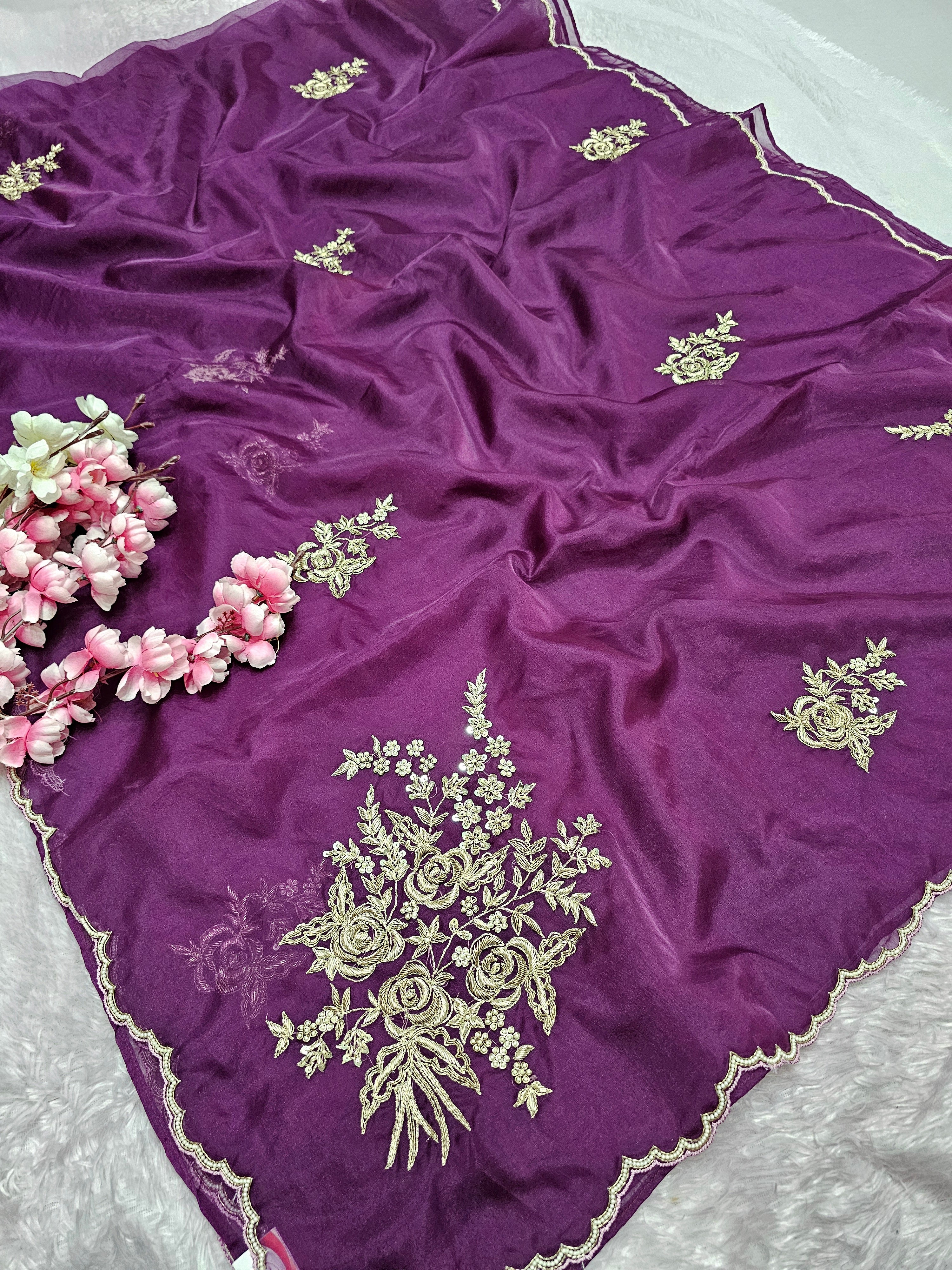 145005 Designer Organza Saree White Zardosi Work with Heavy Stitch Blouse