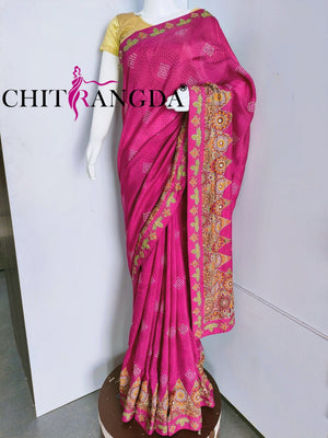147004 Premium Designer Bandhani Printed Saree With Hand Work And Belt