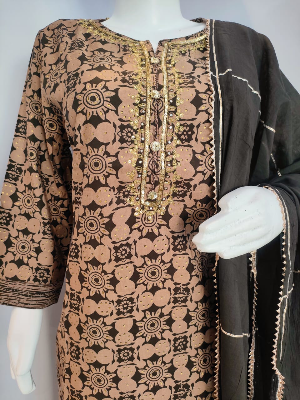 149007 Colorful Hand Embroidered Sequence Work Straight Fit Kurta With Pant and Dupatta
