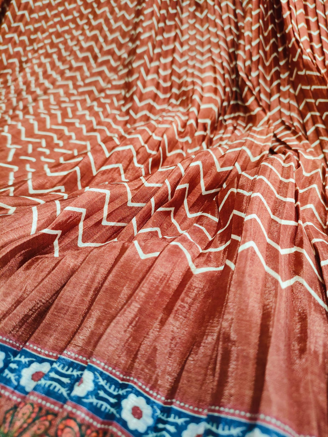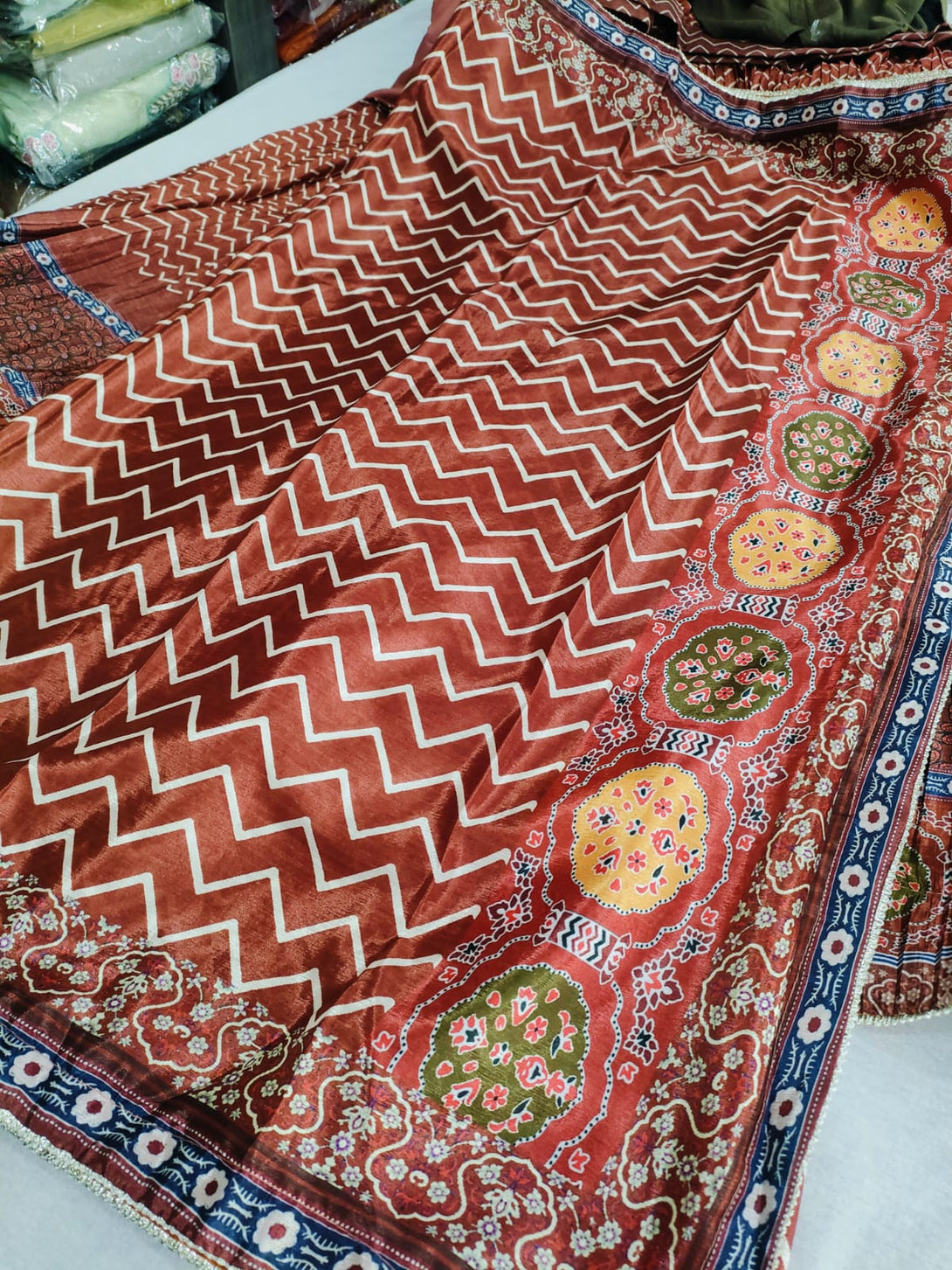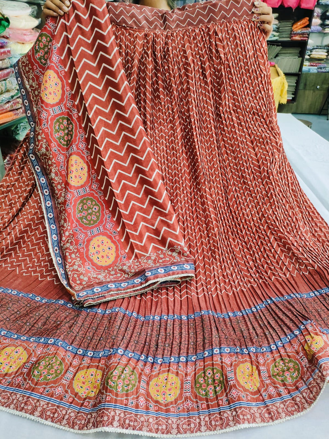 156006 Ajrakh Print Art Silk Lehanga with Dupatta Set