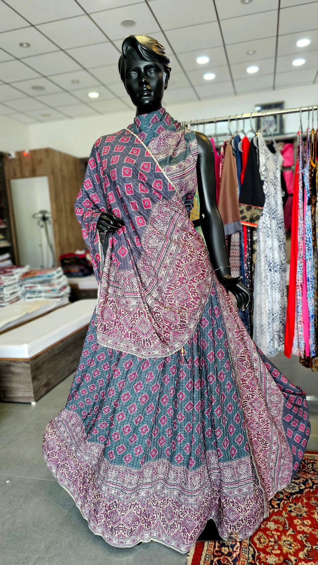 156008 Ajrakh Lehanga with Heavy Dupatta Set and Sequence Work on All Over Lehanga