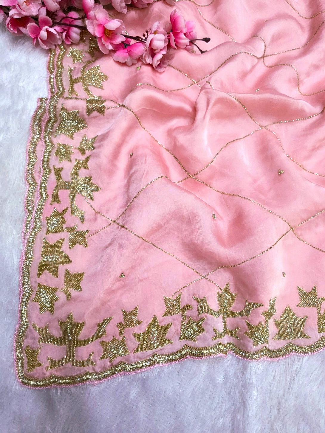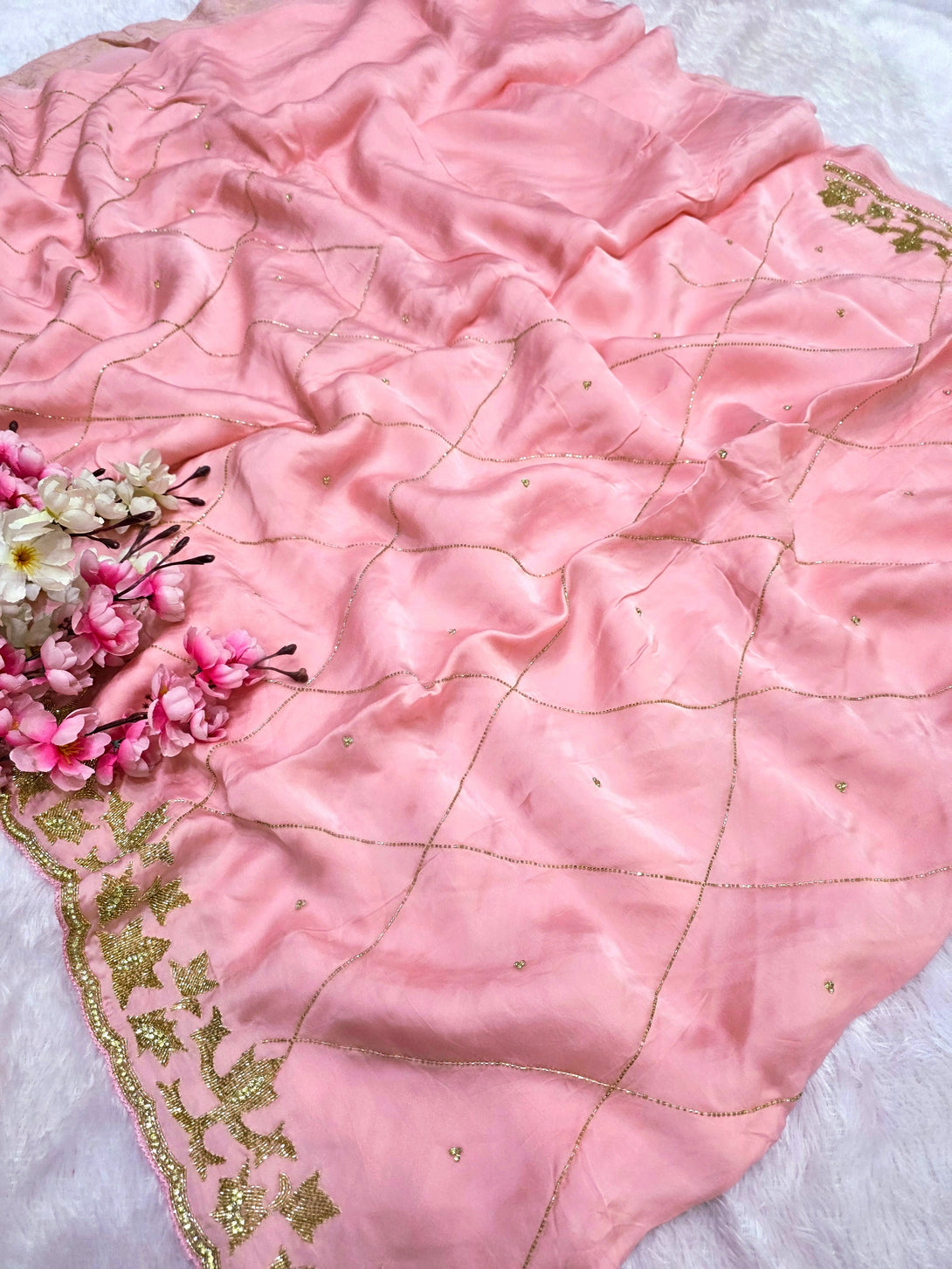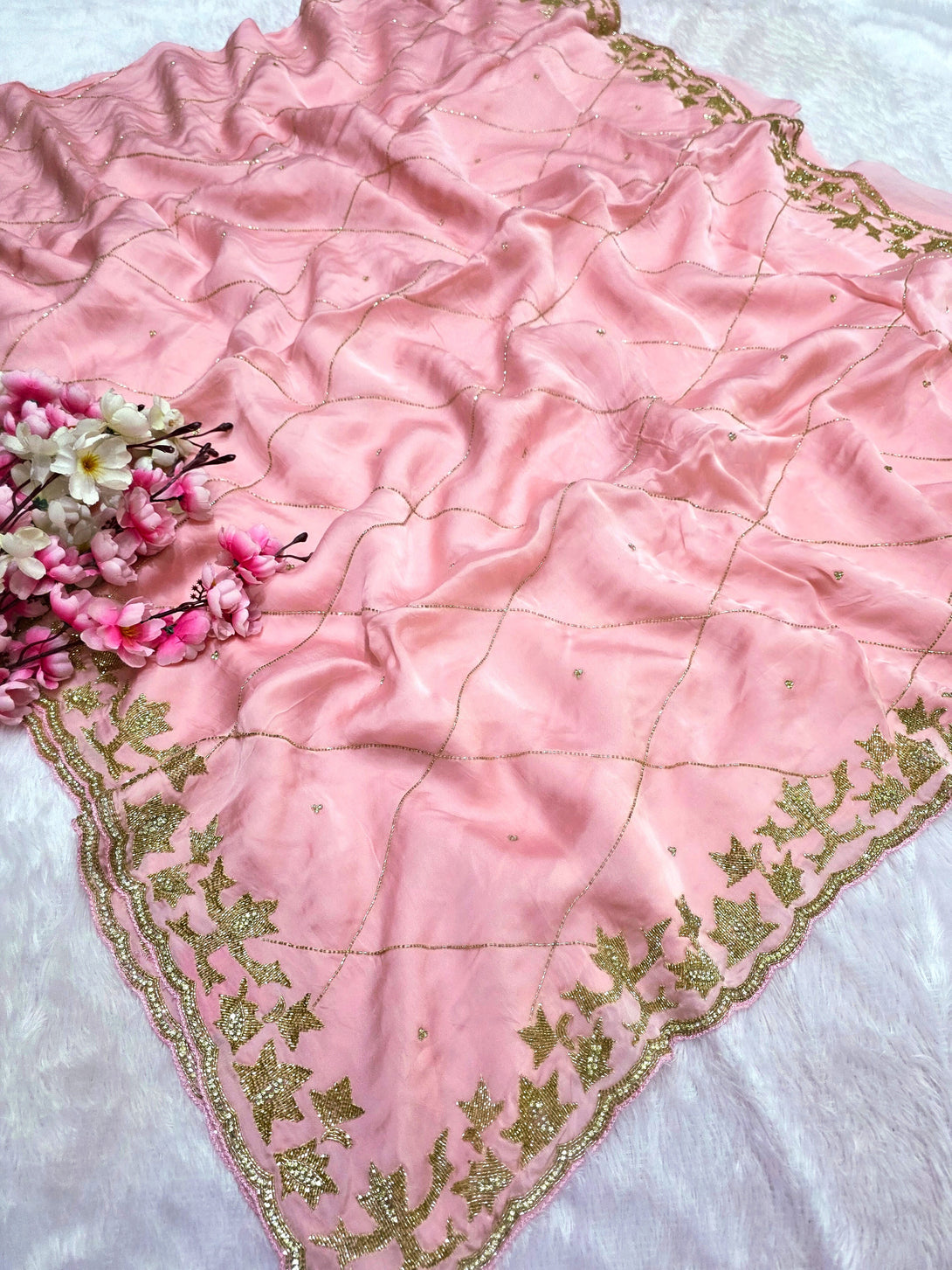 159005 Pure Crepe Silk Saree With Unique Handwork On All Over Saree