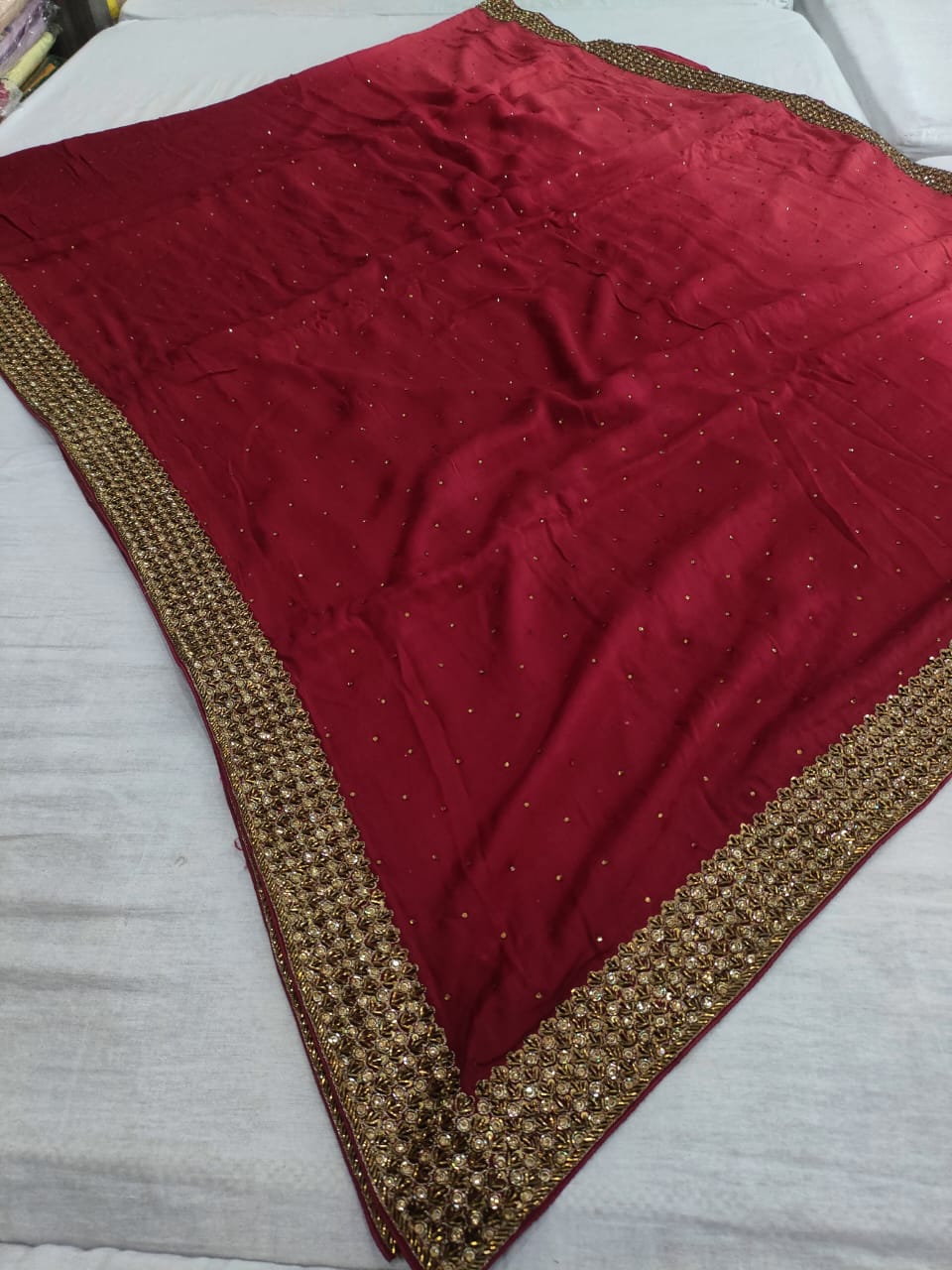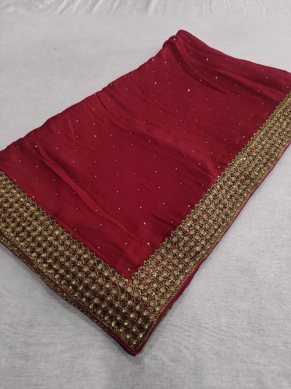 159006 Pure Kolkata Chinon Silk Shaded Saree With Unique Handwork On All Over Saree