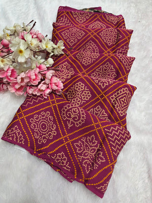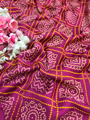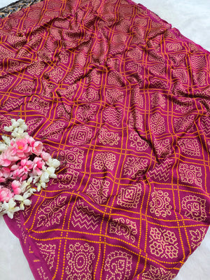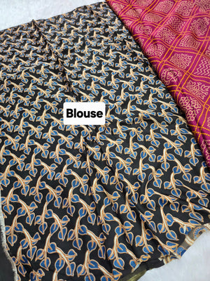 162004 Modal Silk Pure Ajrakh Bandhani Saree Kalamkari Zari Pallu and Ajrakh Printed Blouse - Wine