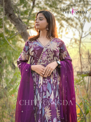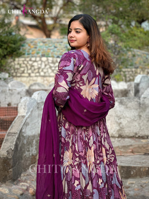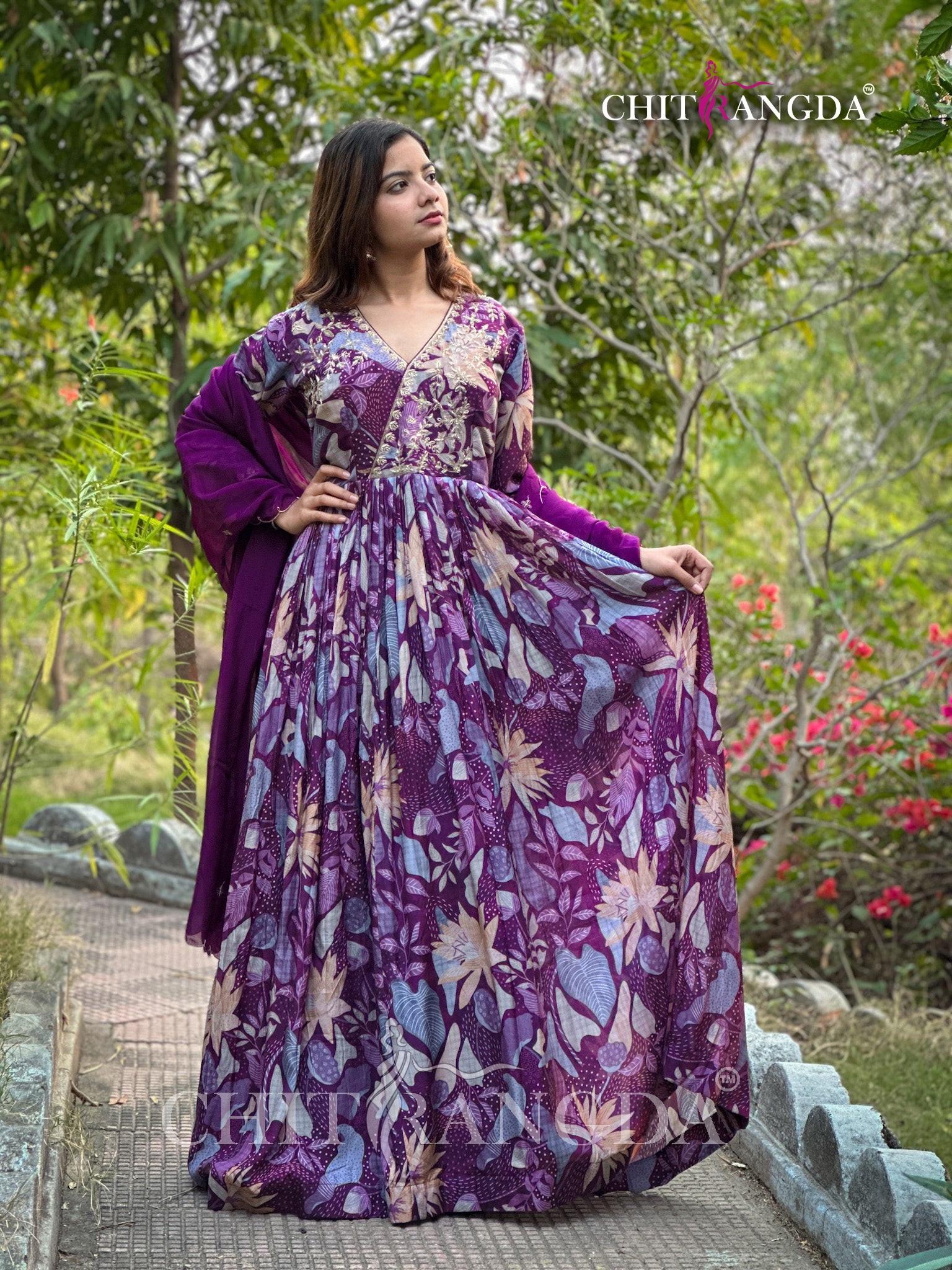 Home 1661 Designer Printed Angrakha Style Gown with Designer Work