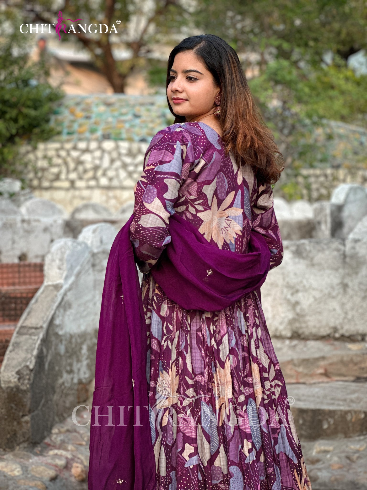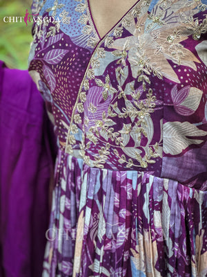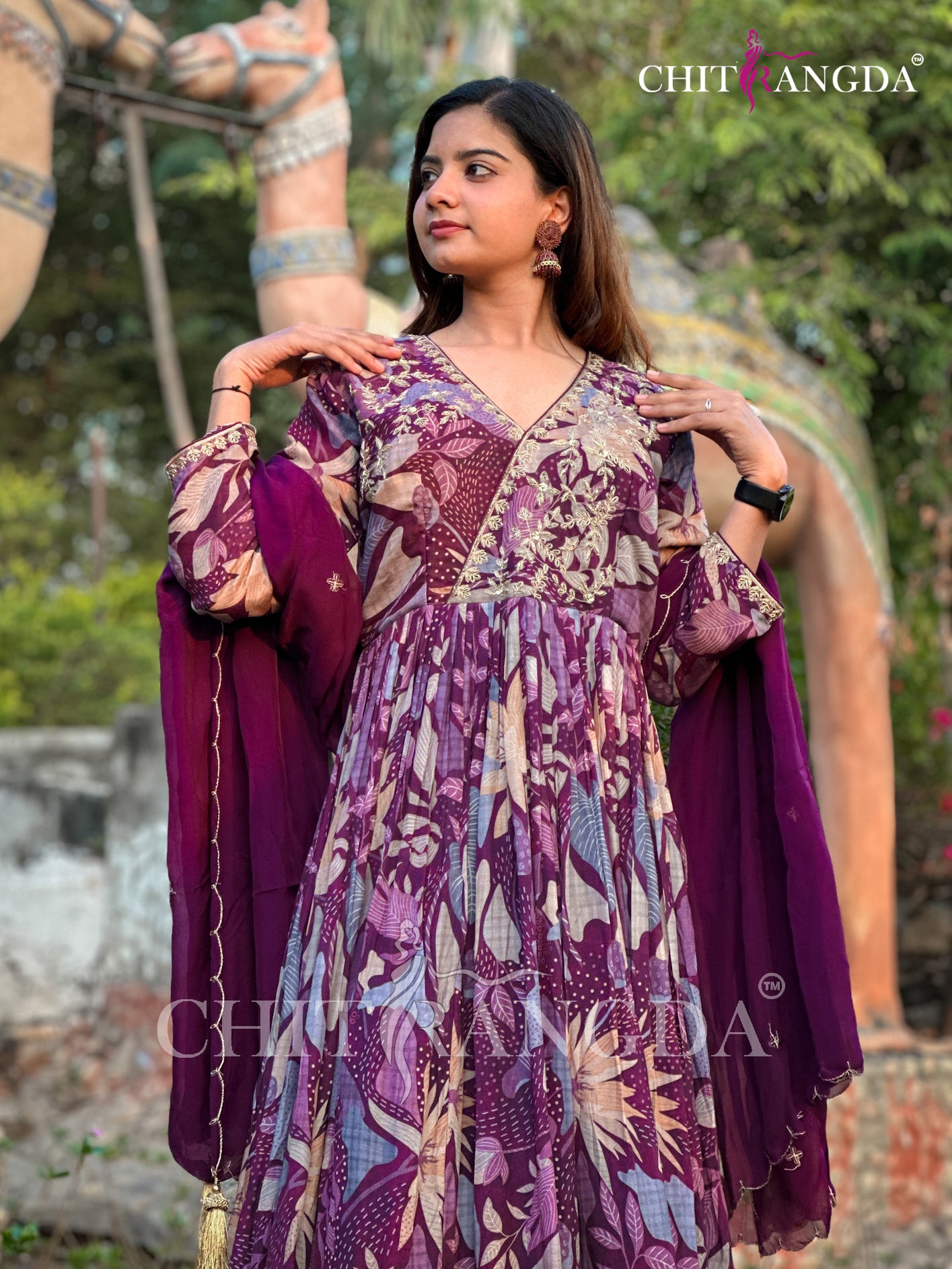 • Highlight : Designer Printed Angrakha Style Gown with Designer Work