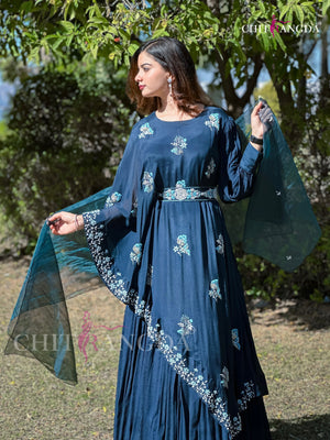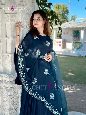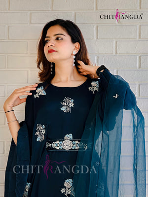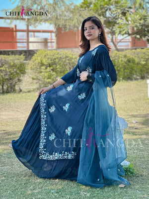 1671 Premium Crepe Silk Designer Dress with beautiful Cutdana and zardozi Work