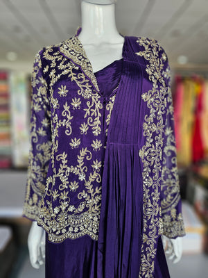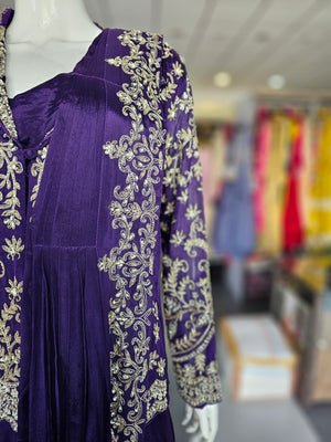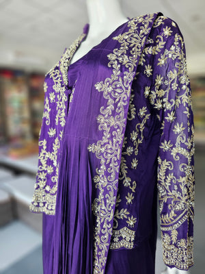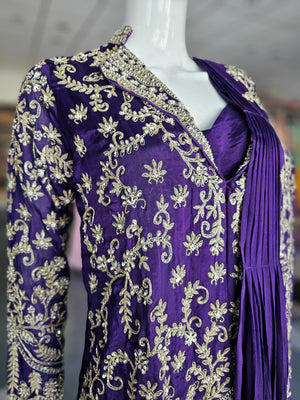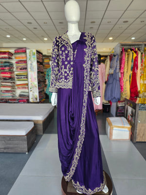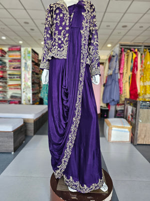 BEAUTIFUL PURE CHINON CREPE SILK DESIGNER DRESS DETAILED WITH ZARDOZI WORK COMES WITH BEAUTIFUL DRAPED STYLE.