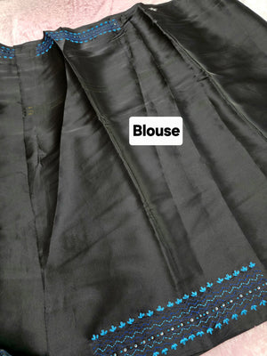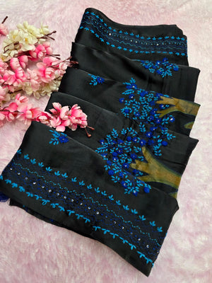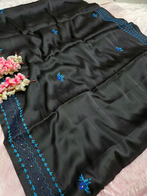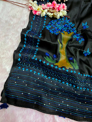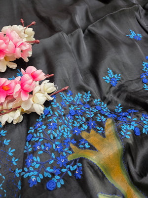 2024 Hand Painted Pure Satin Silk Hand Made Premium Suta Embroidery Premium Saree