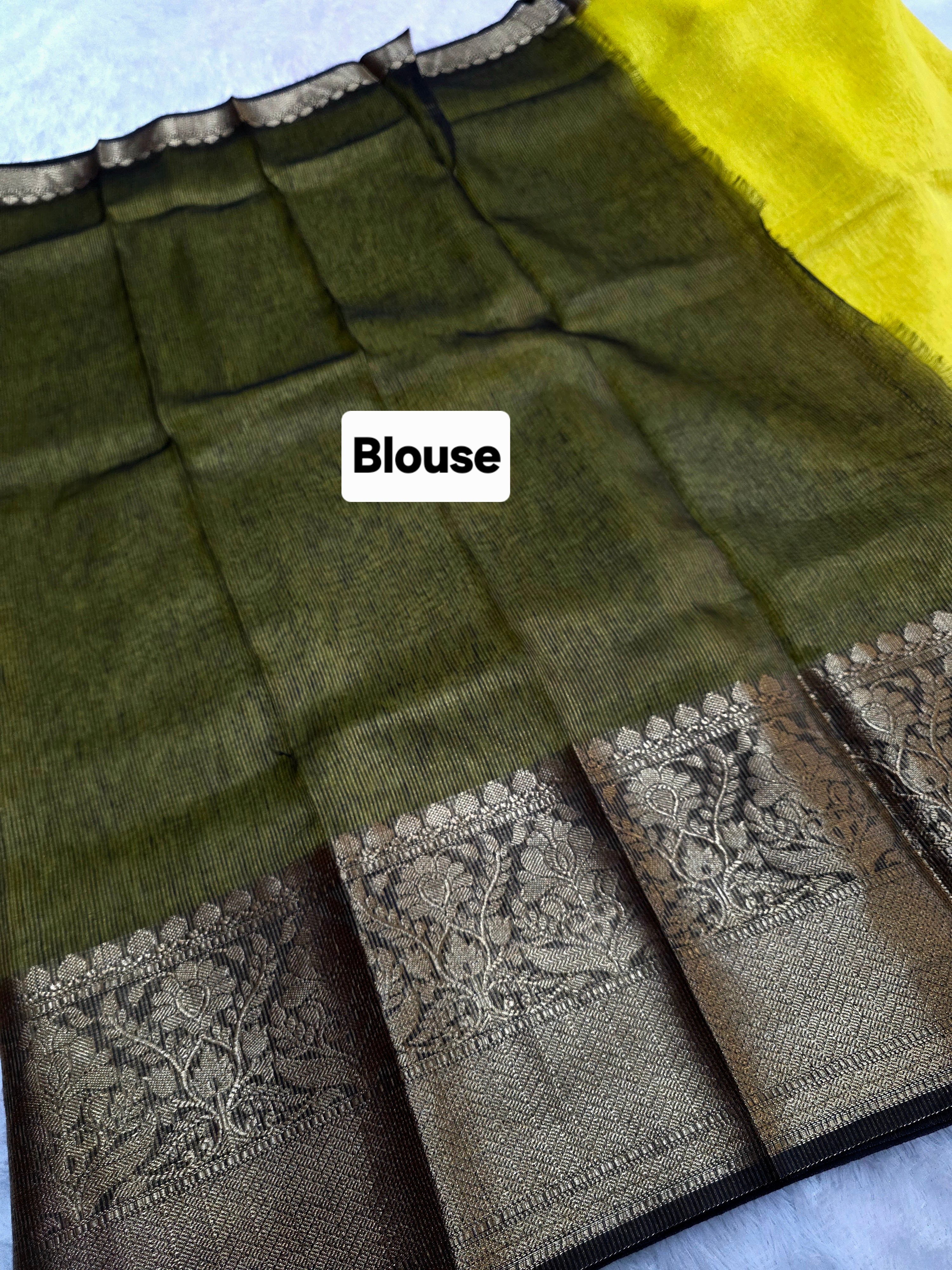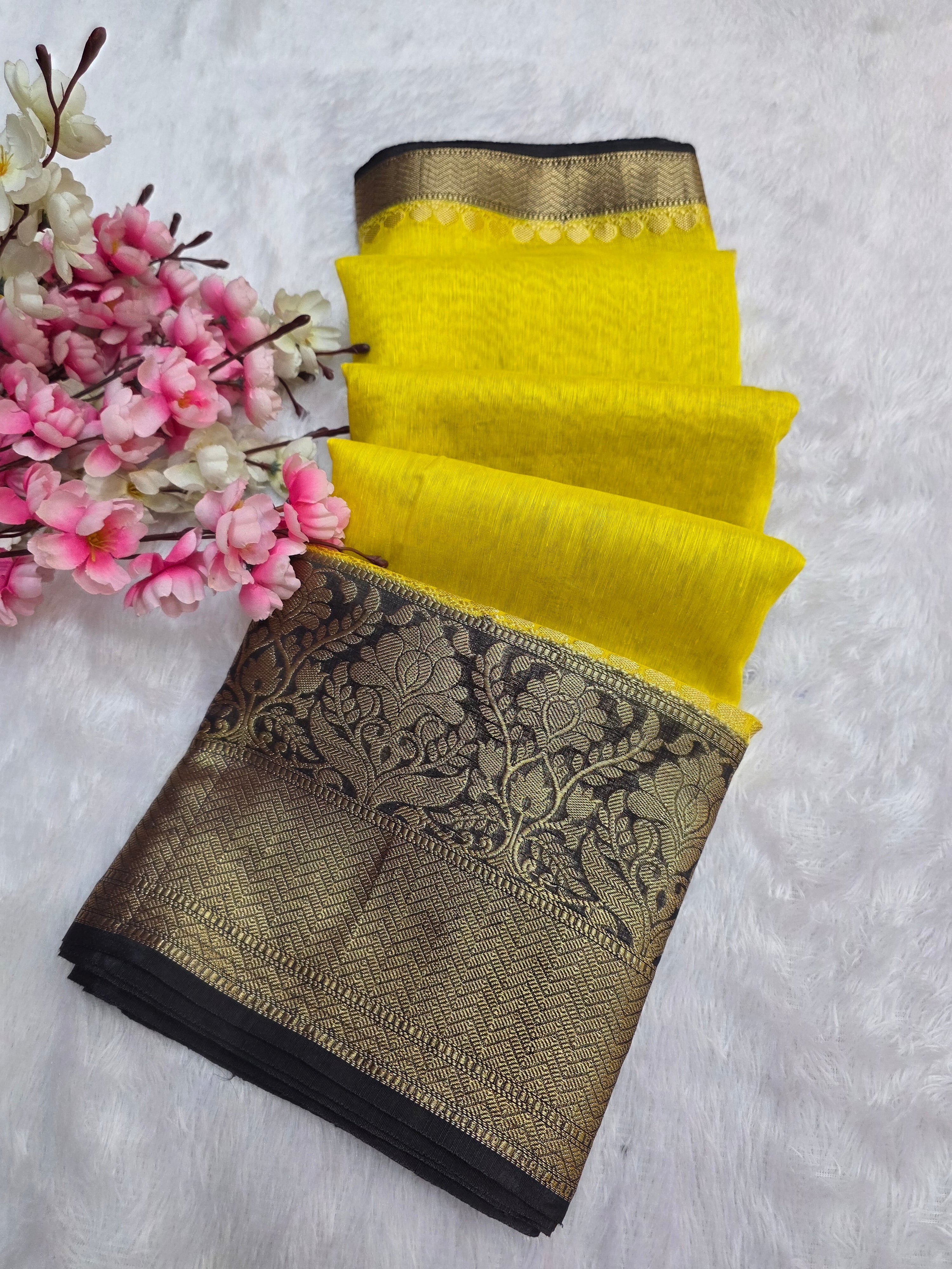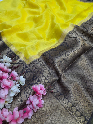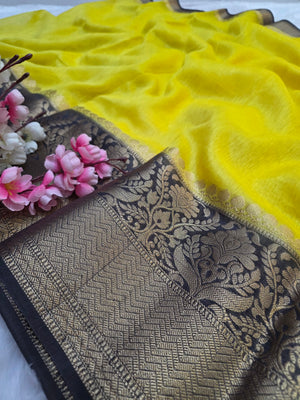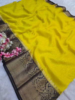 270002 Kanjiwaram Style Banarasi Saree - Yellow