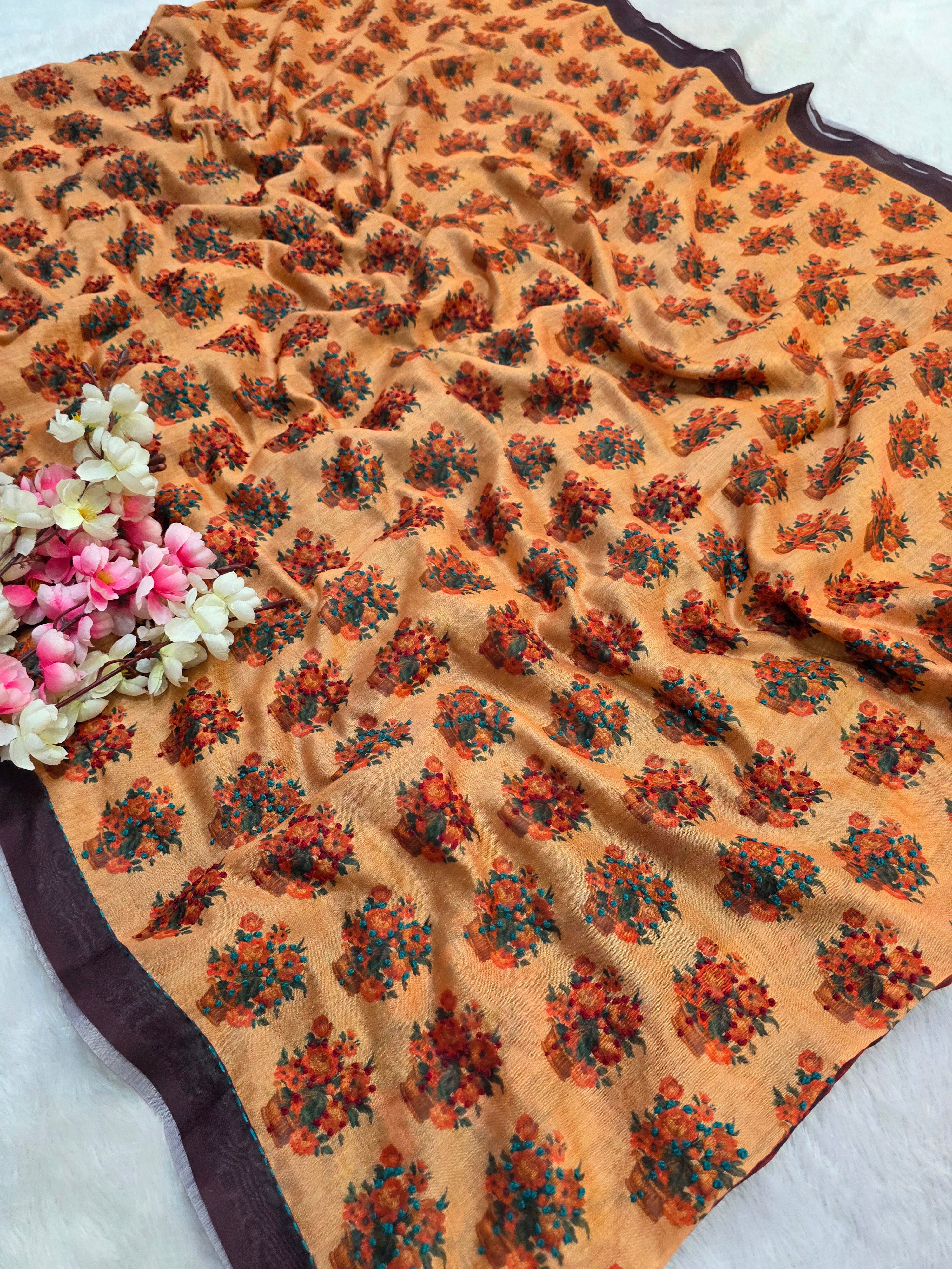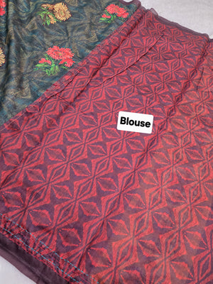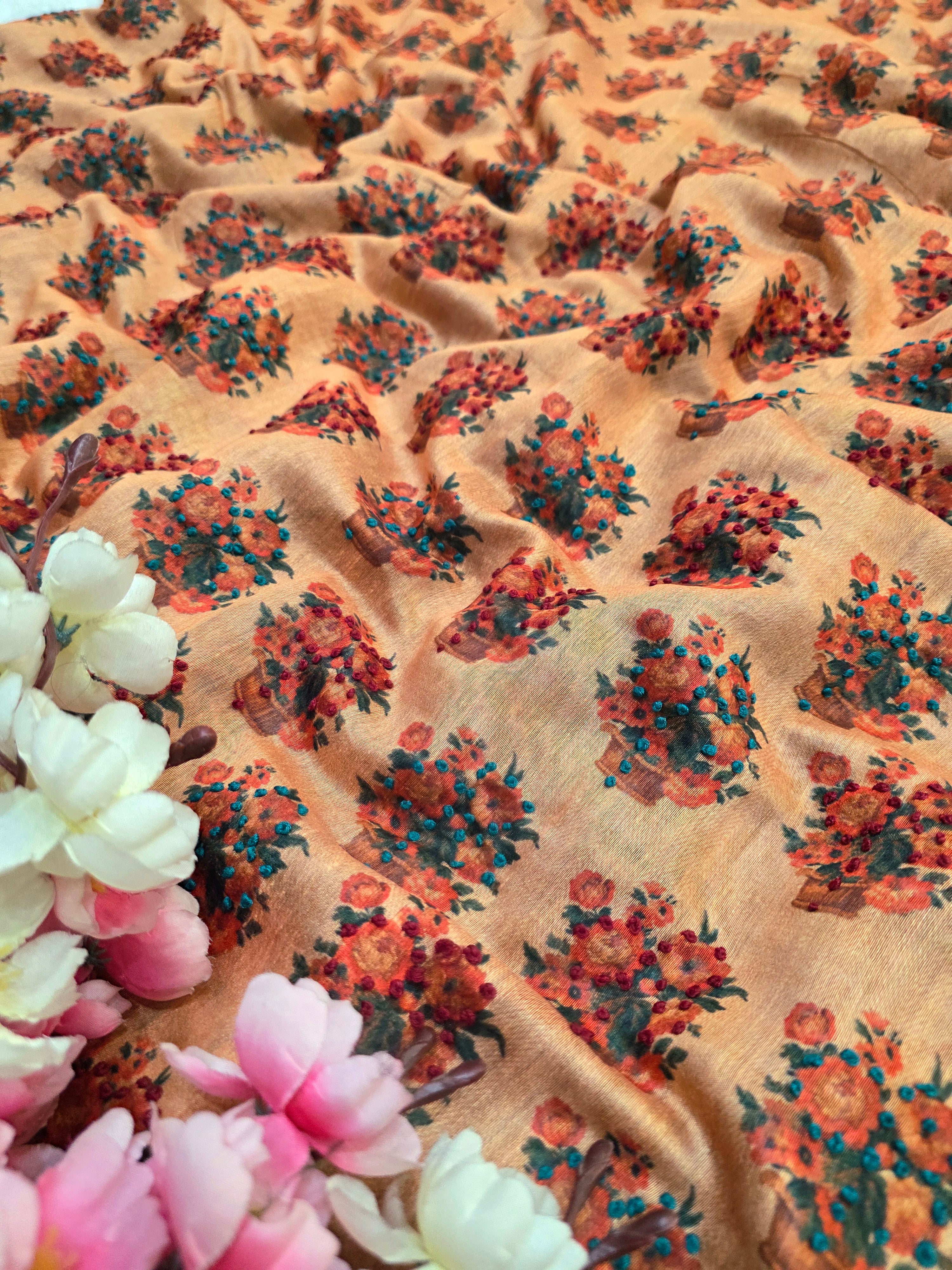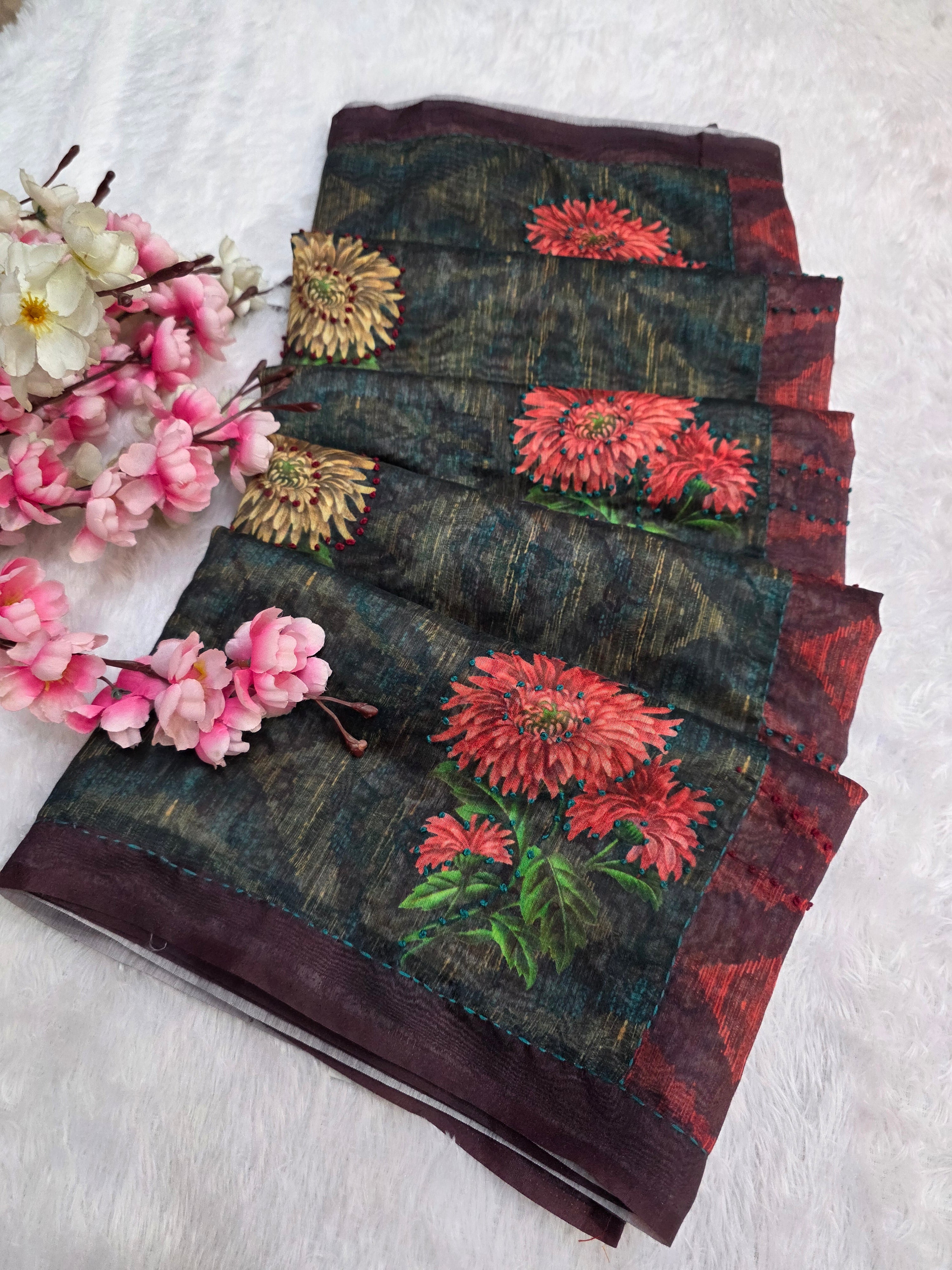 441006 Latest Designer Printed Saree with Kolkata Suta Work