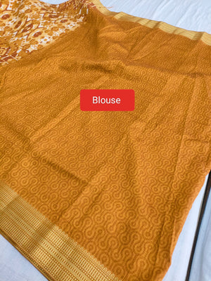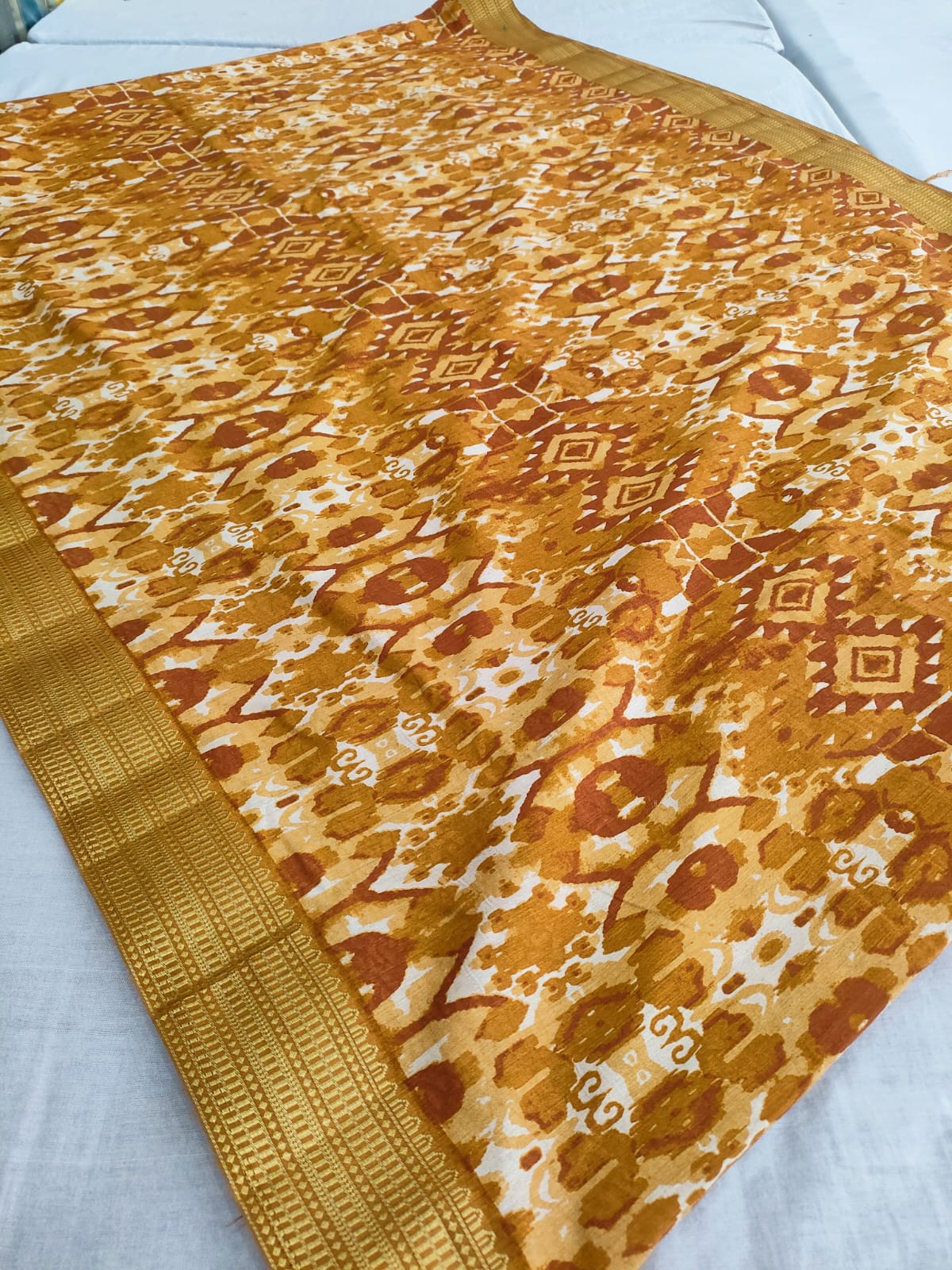 445001 Designer Print Chanderi Silk Saree - Yellow