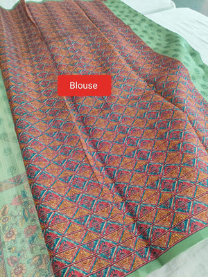 445005 Designer Silk Printed Saree - green