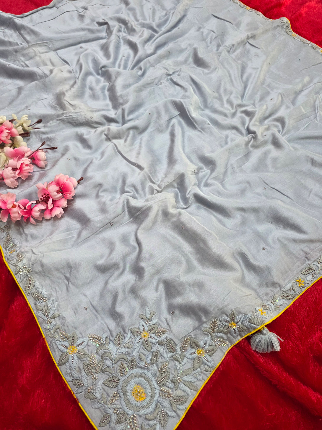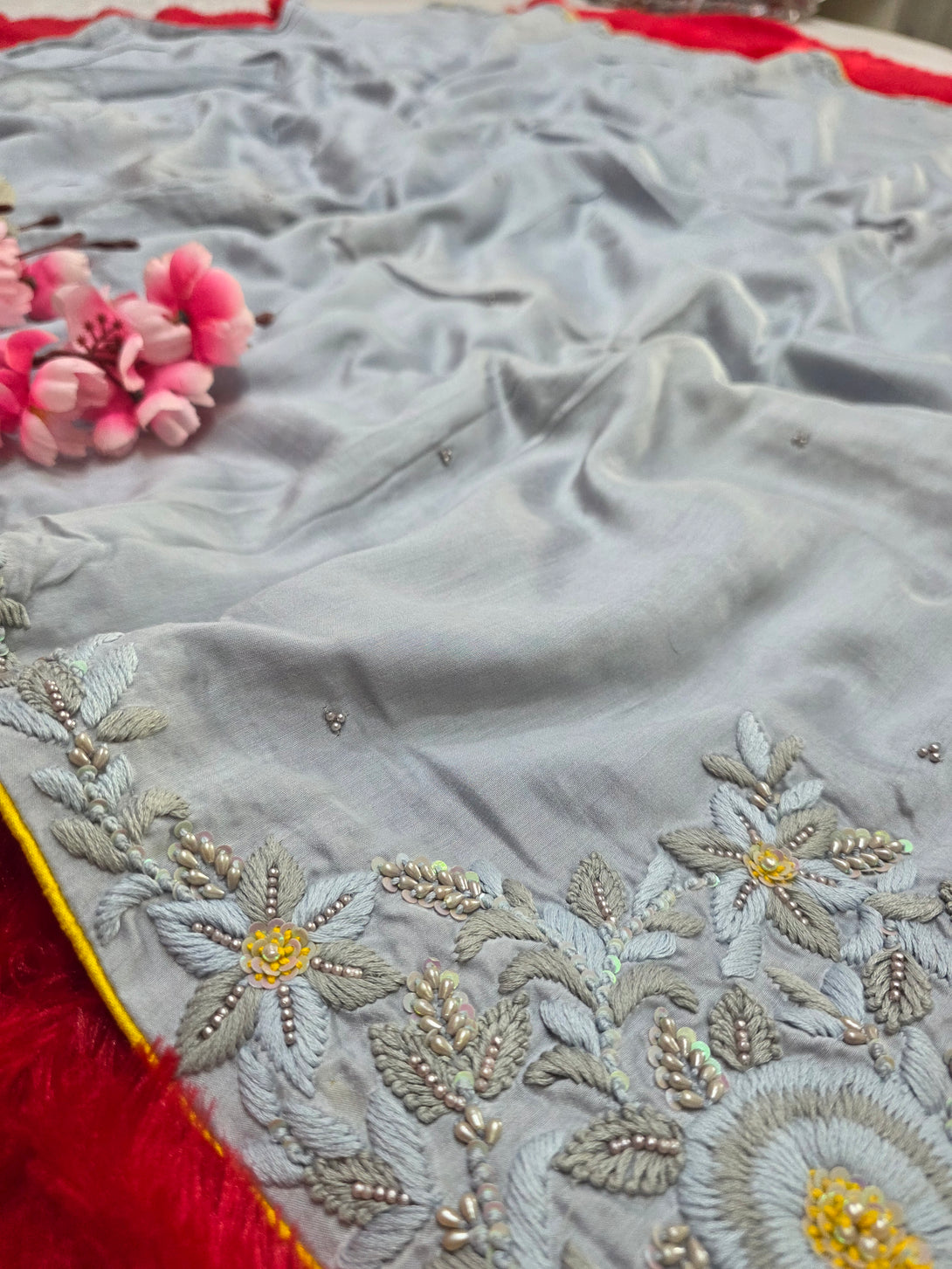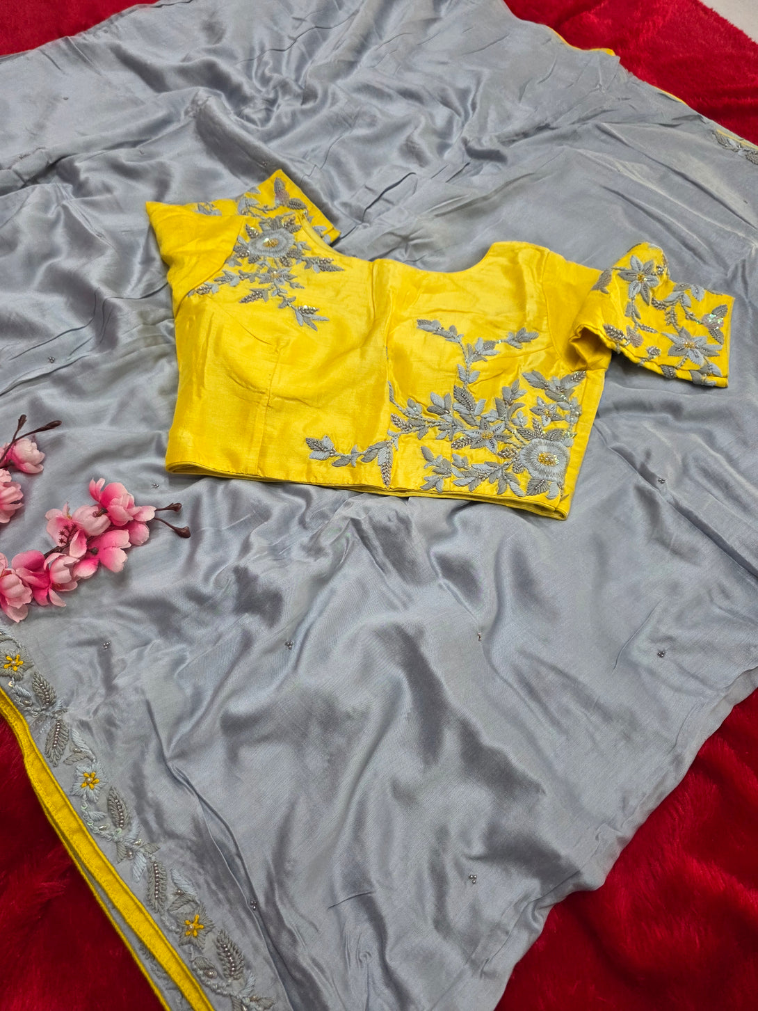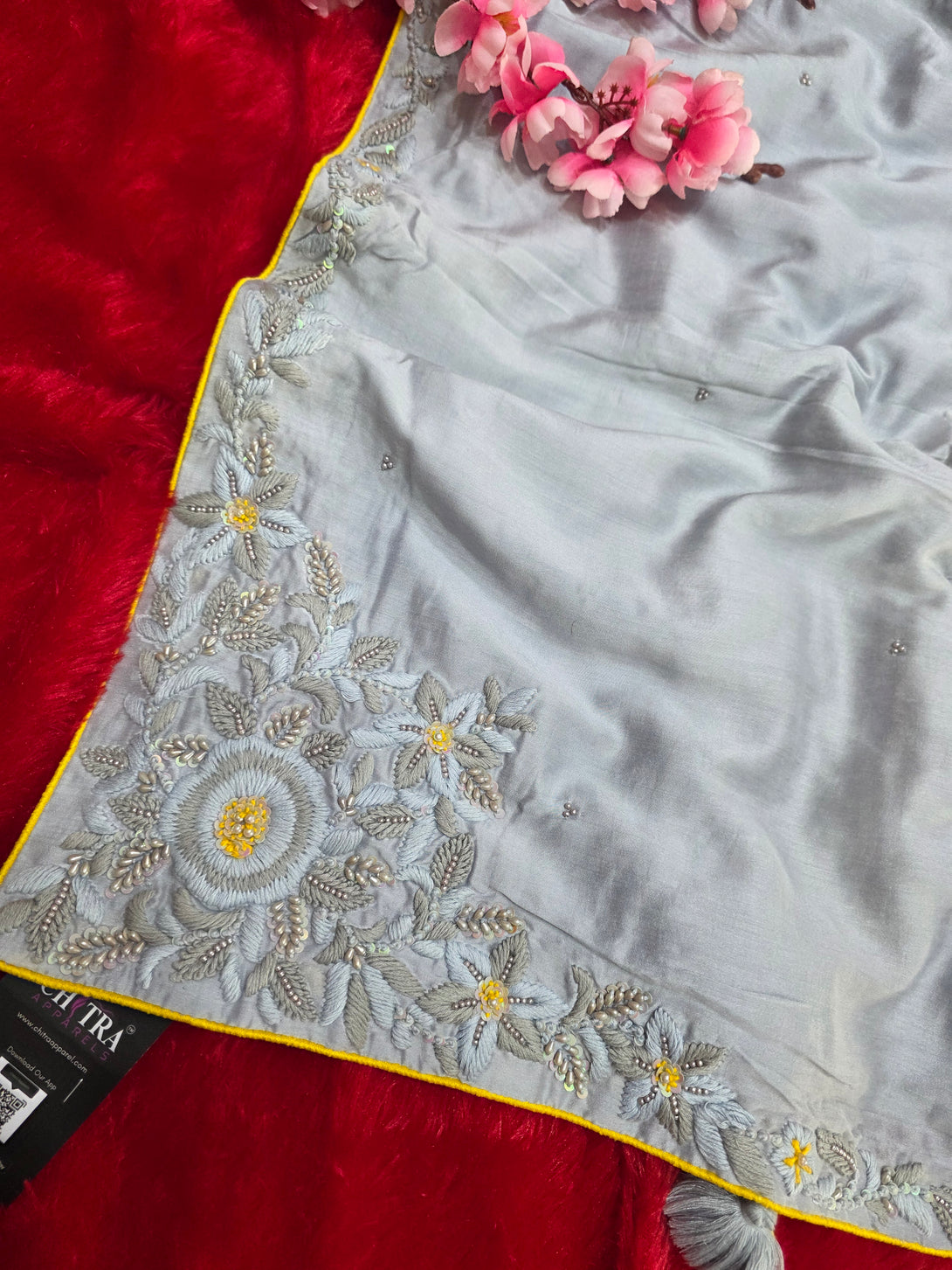 4749 Pure Maslin Silk Beautiful Hand Crafted Designer Chitra Special Saree with Stitched Blouse