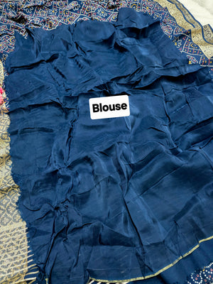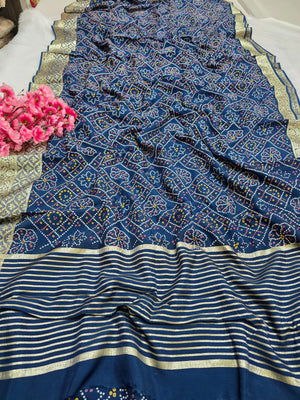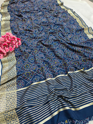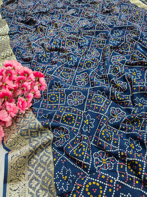 500007 Bandhani Saree With Banarasi Zari Weaving Work - Blue 347002