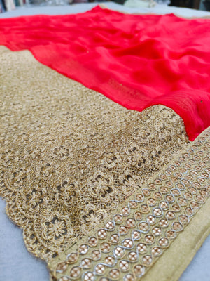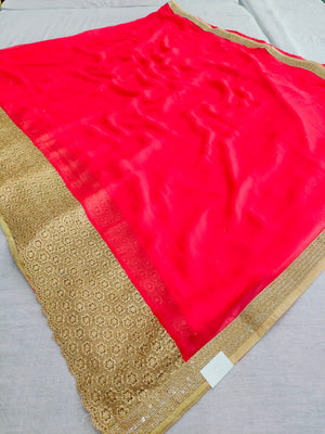 504001 Laxmipati Georgette Saree with Heavy Border and Stone Work With Fancy Blouse