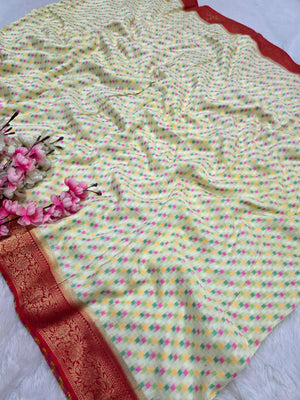 533003 Pure South Silk Saree With Ikkat and Minakari Work - Cream