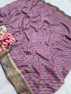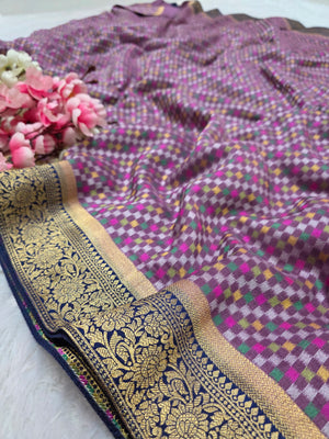 533003 Pure South Silk Saree With Ikkat and Minakari Work - Purple