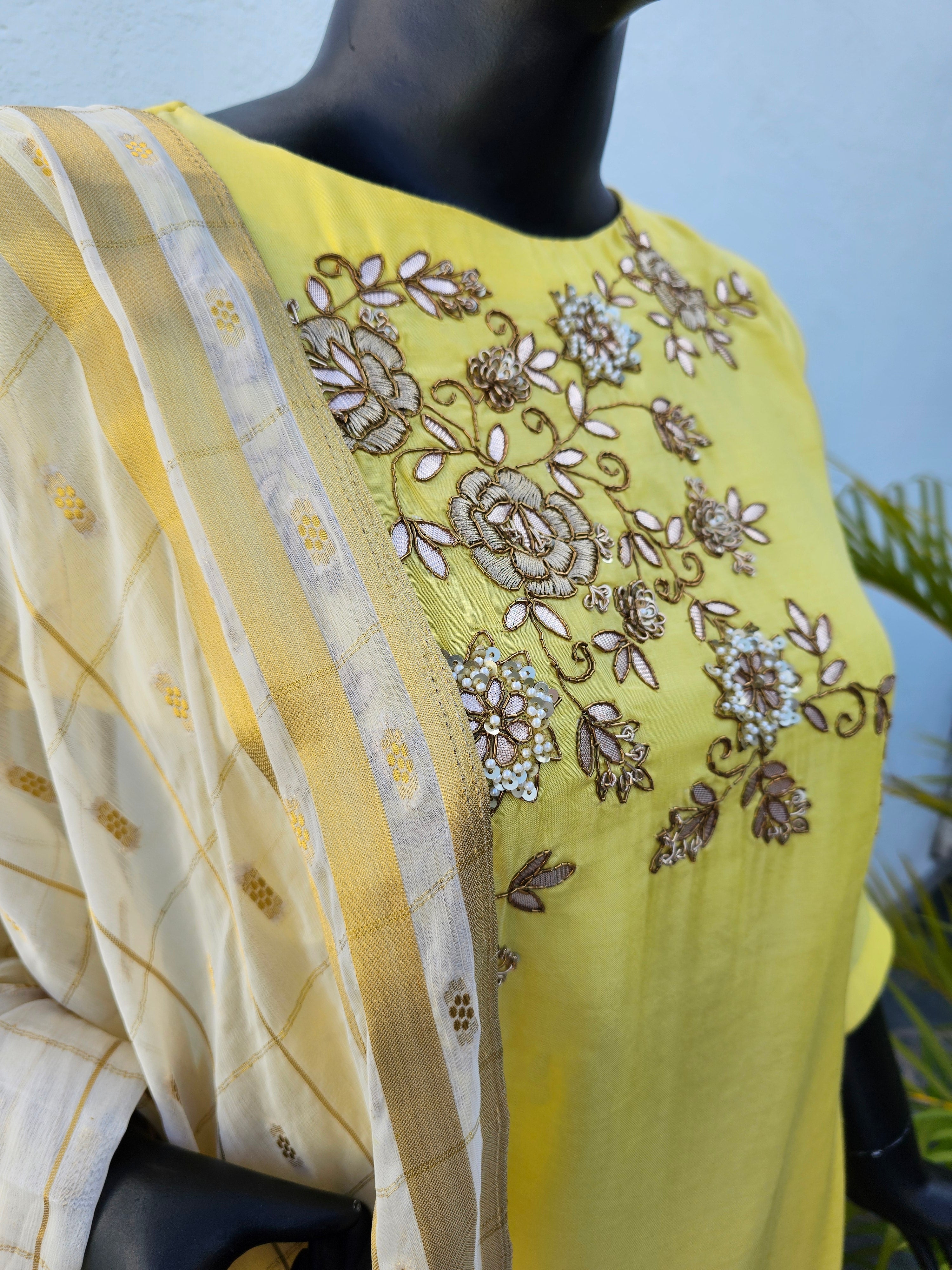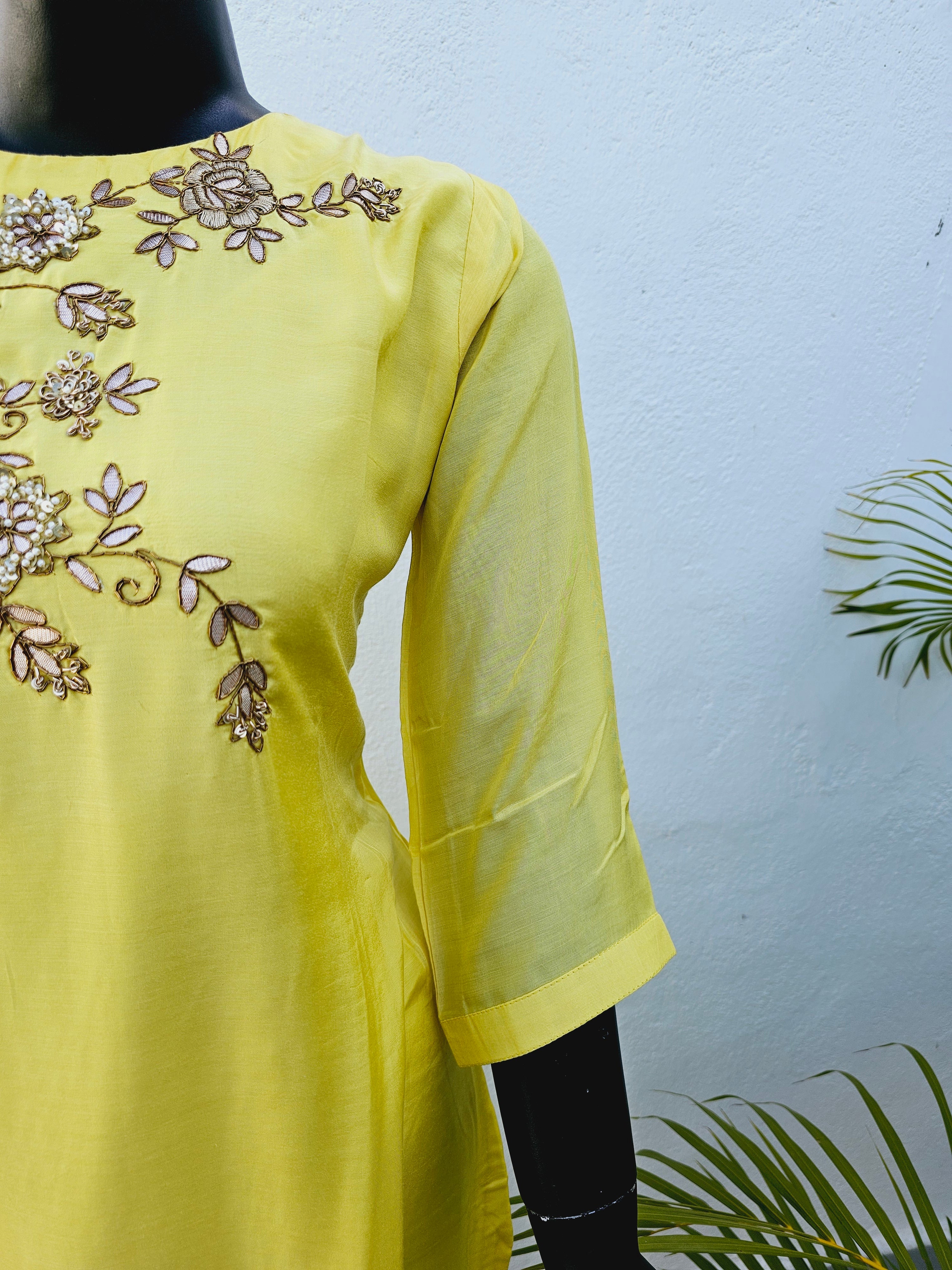 - Highlight : Straight Fit Kurta, Hand Embroidered Yoke