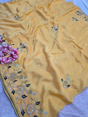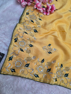 5461 Pure Russian Silk Designer Cutdana and Pearl Work Yellow Saree (815008) 961001