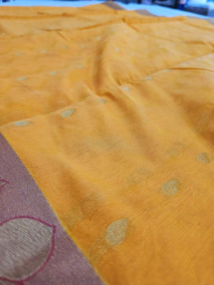 550007 Banarasi Pure Cotton Saree With Zari Weaving