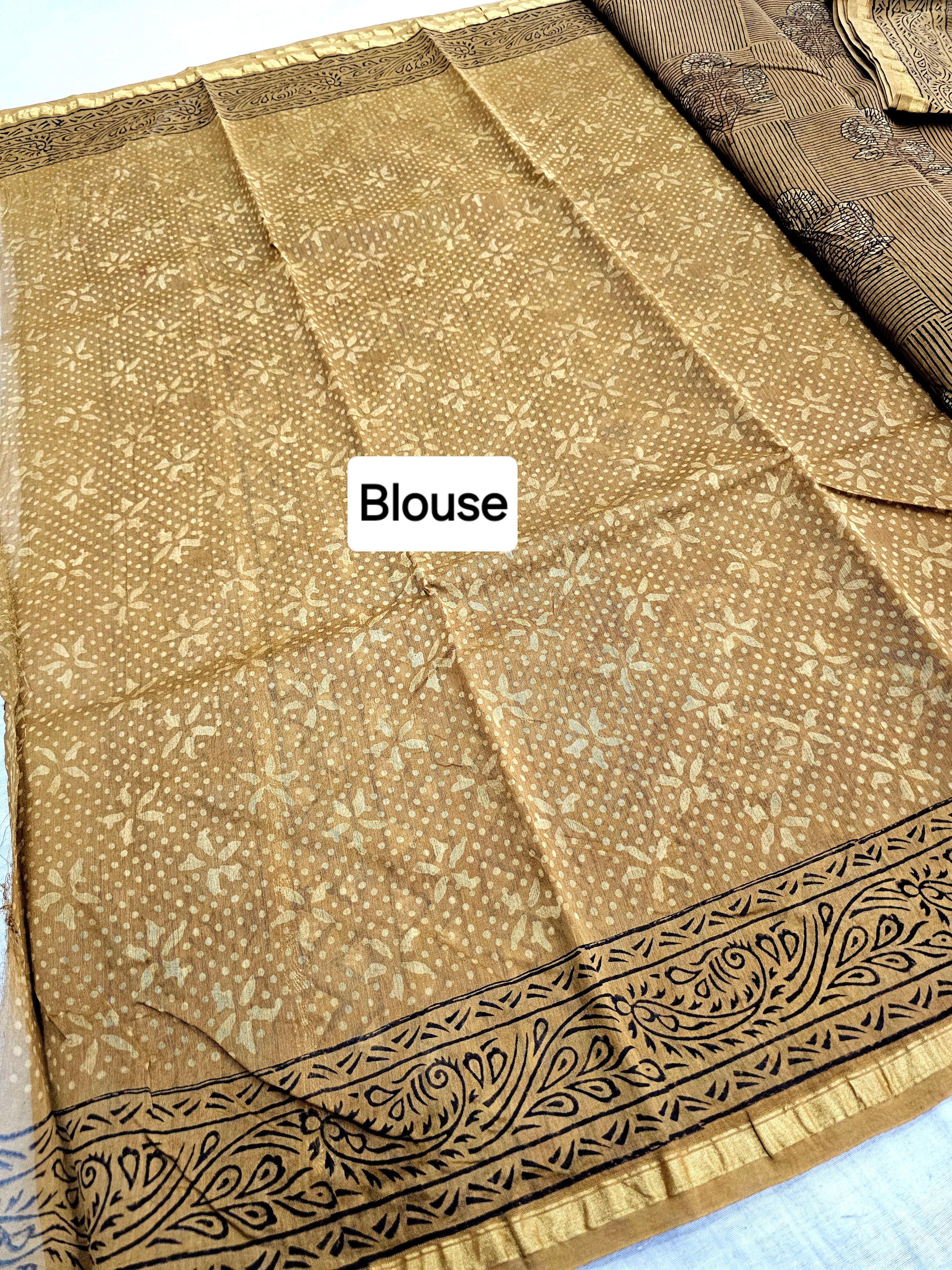 581009 Pure Chanderi Silk Hand blocked Printed Saree