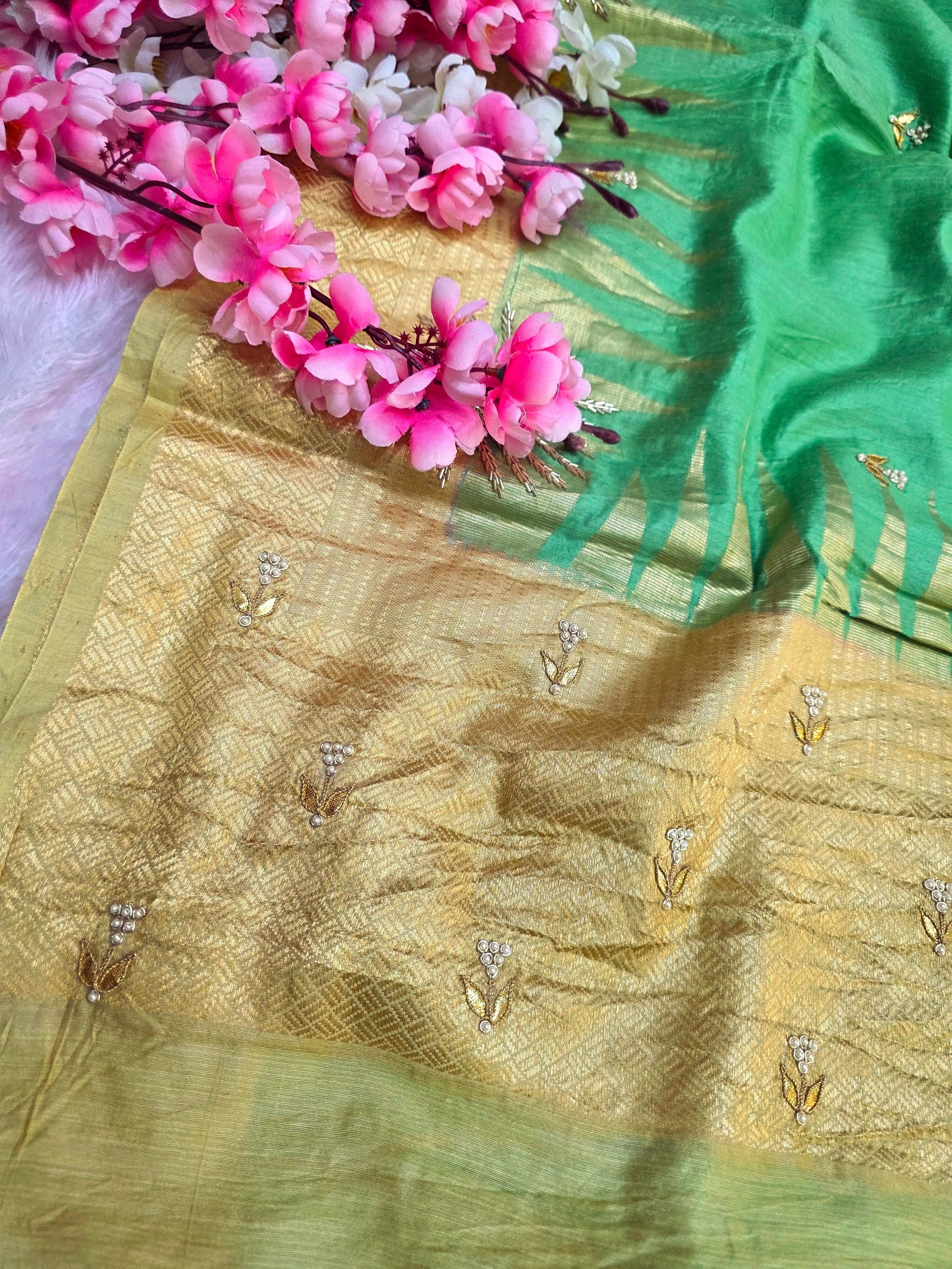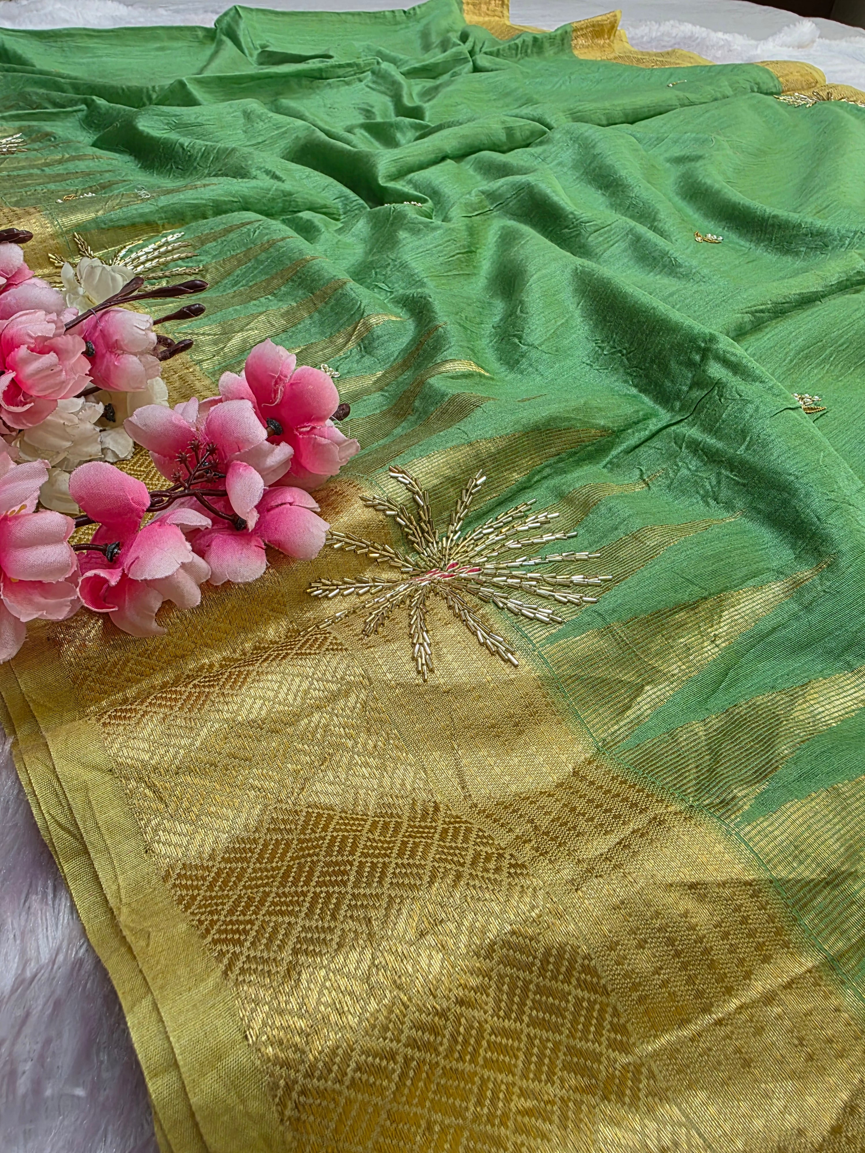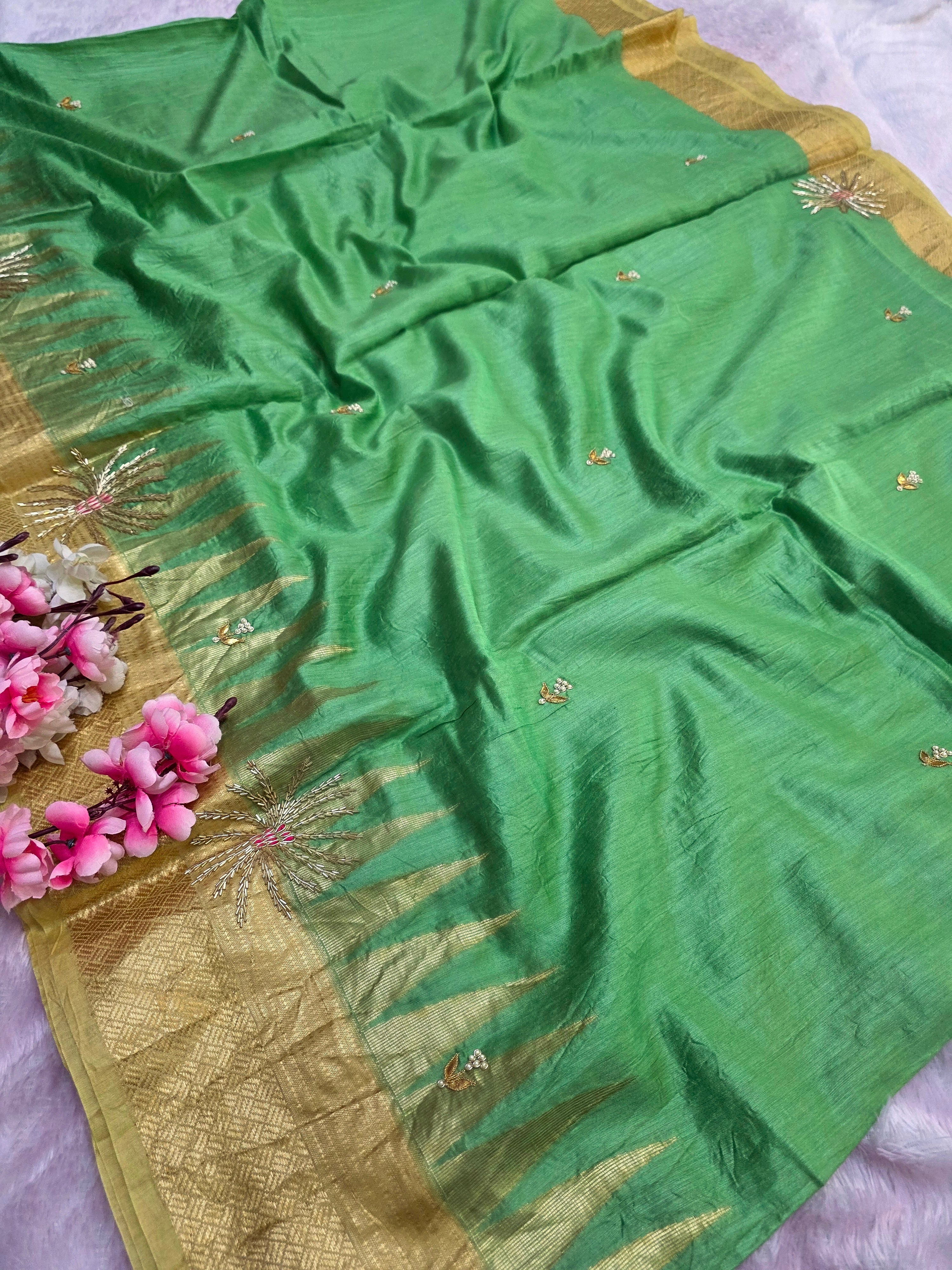 5906 Pure Tussar Silk Beautiful Hand Crafted Designer Saree with Hand Work