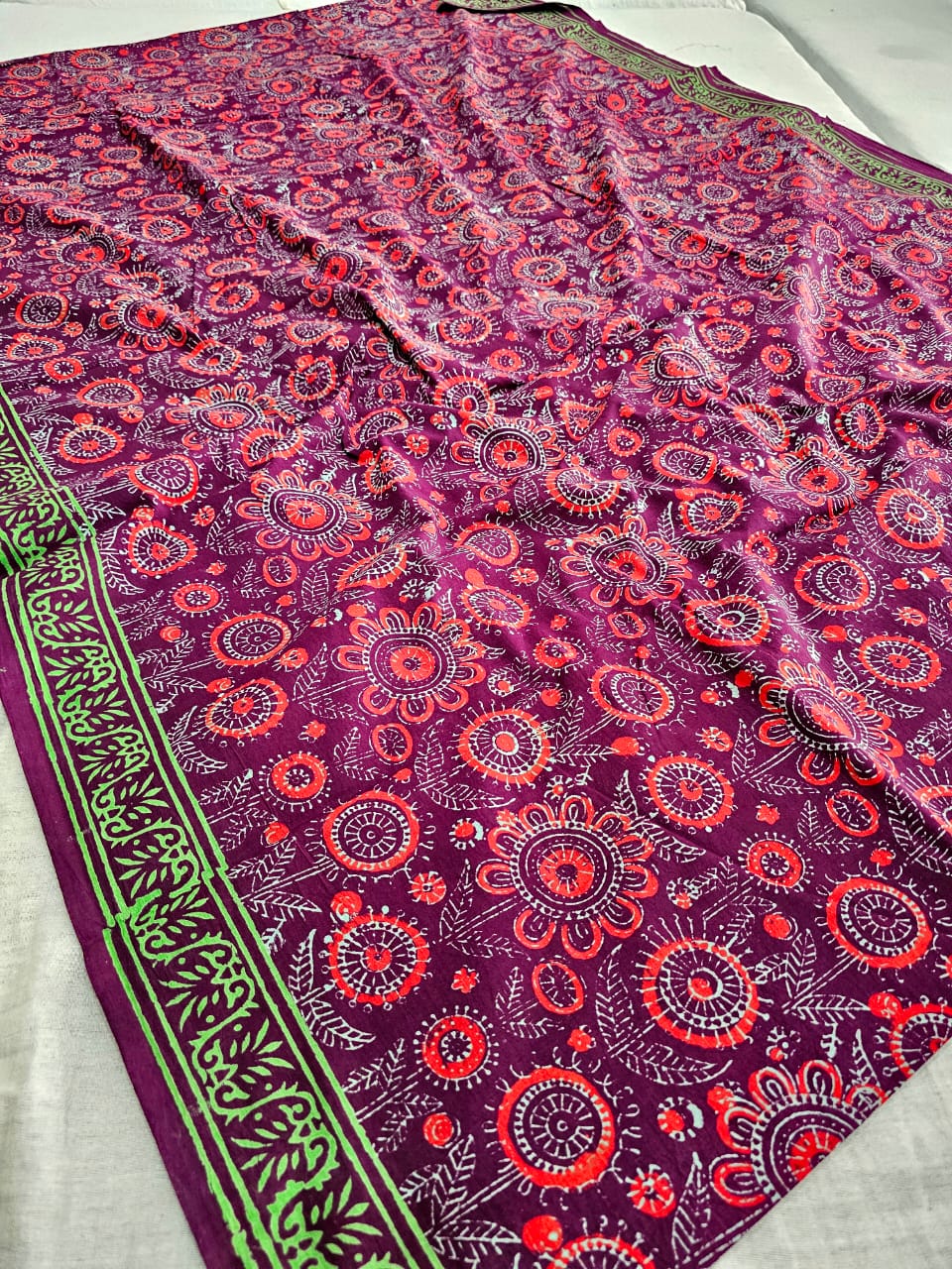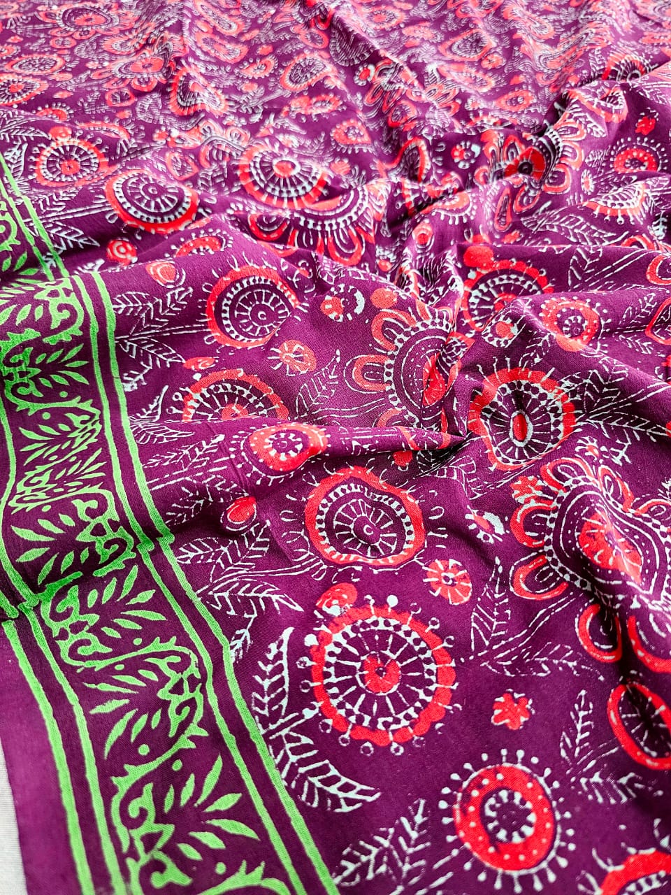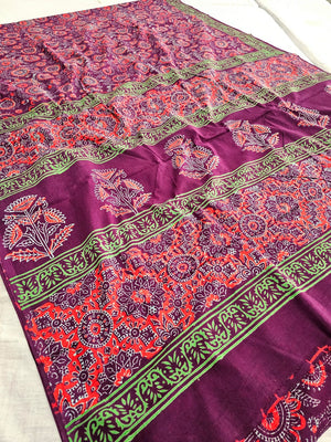 607008 Pure Mul Cotton Handblocked Printed Saree