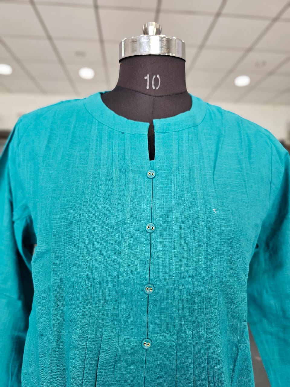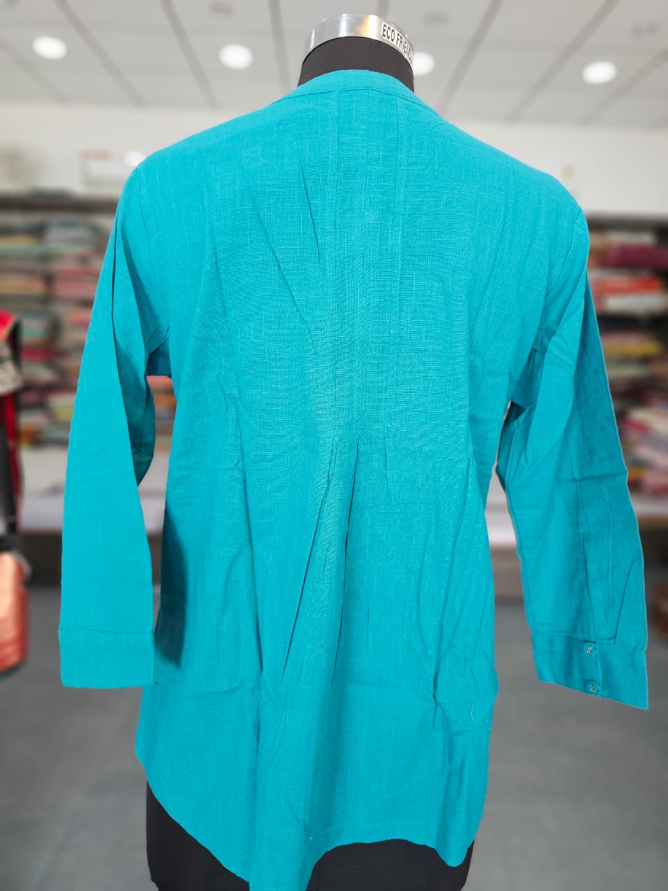 611003 Solid Color Pure Cotton Peplum Style Short Kurti - Firozi