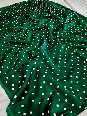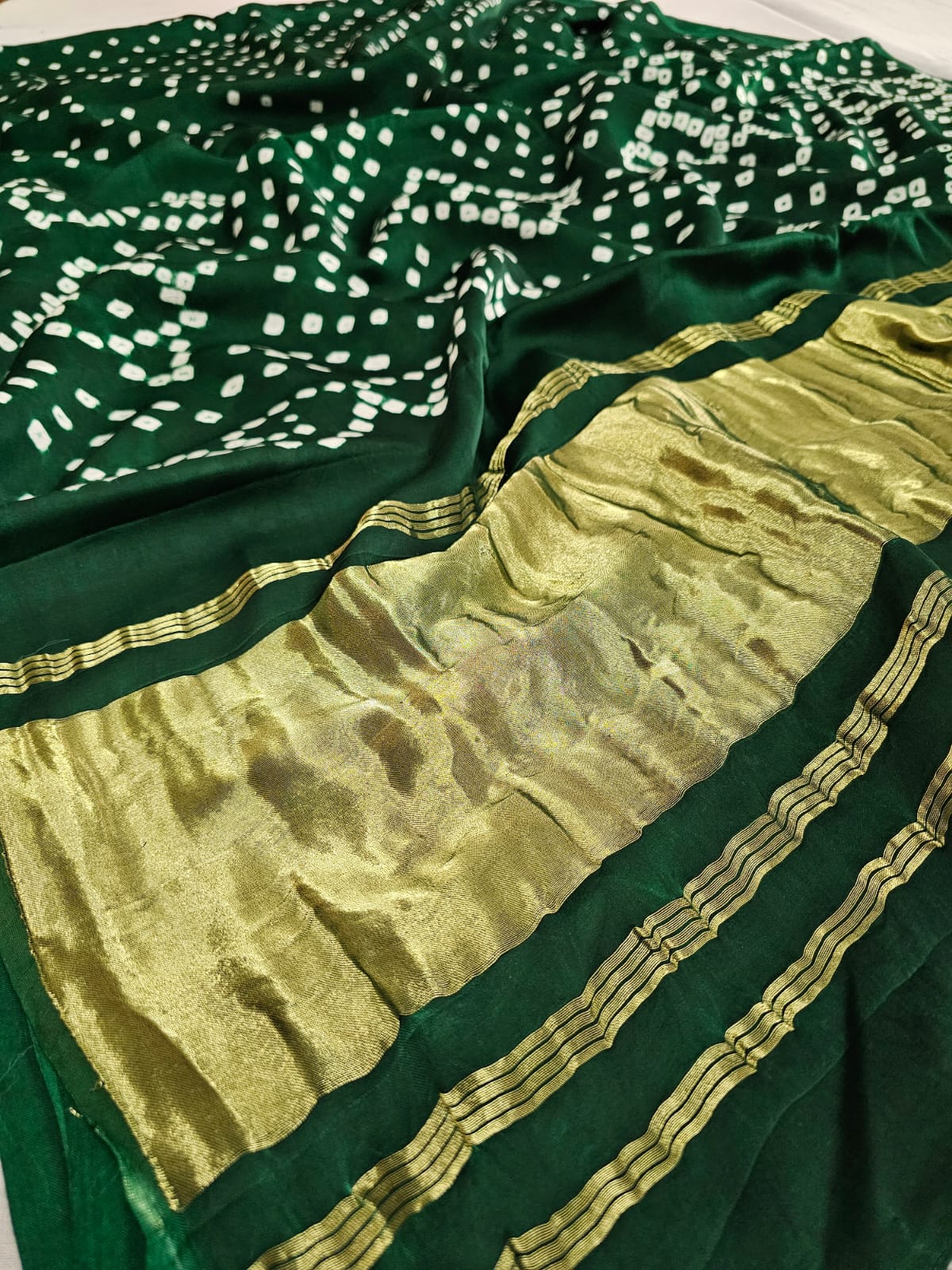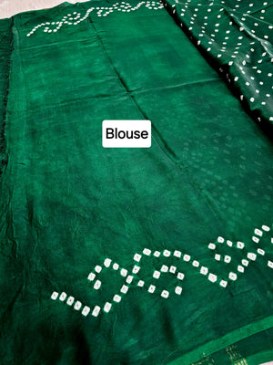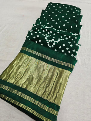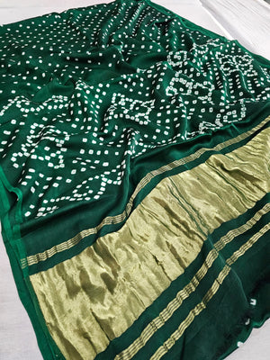 More Options: 624002 Gajji Silk Rajasthani Hand Bandhani Saree with Lagadi Patta - Green