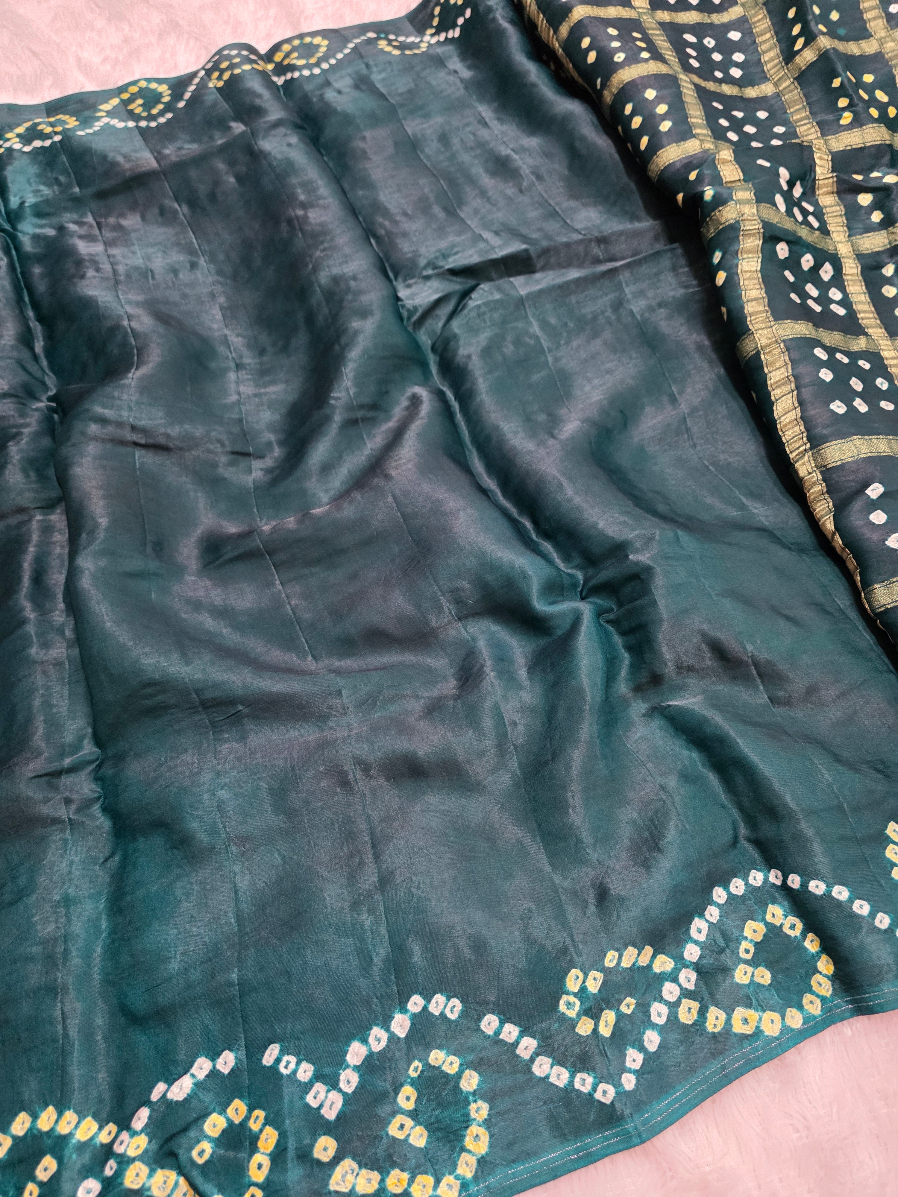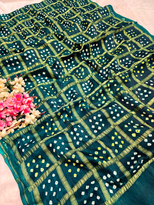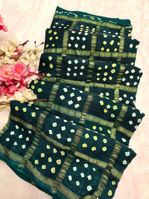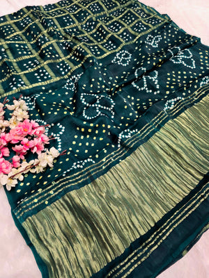 624003 Ghatchola Gajji Silk Saree With Hand Bandhani with Lagadi Patta - Green