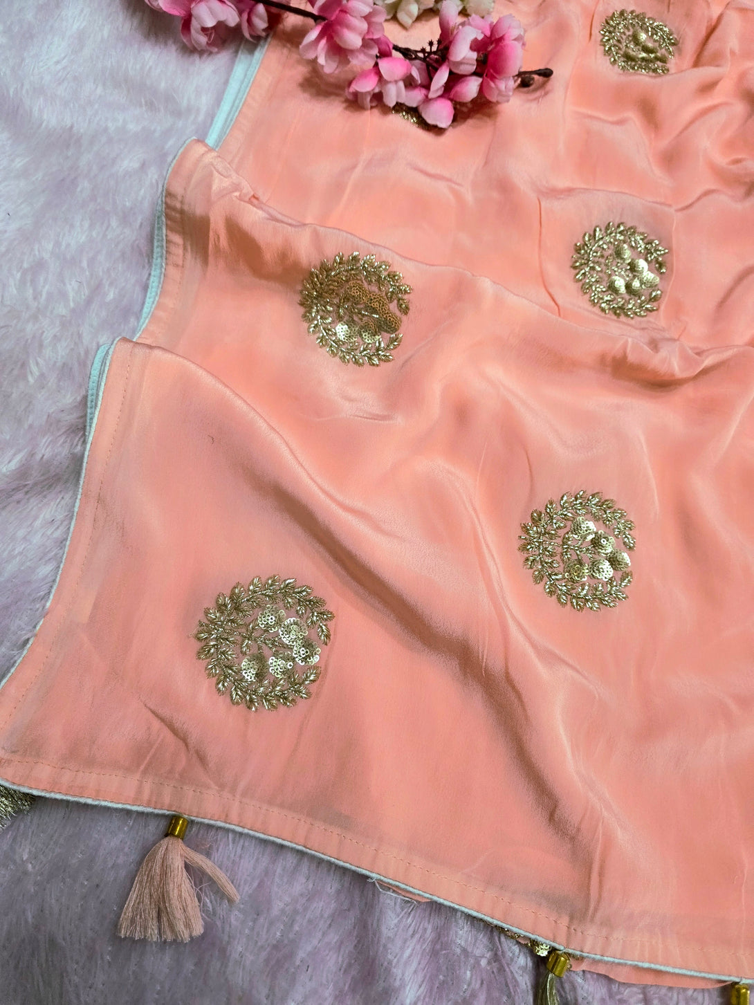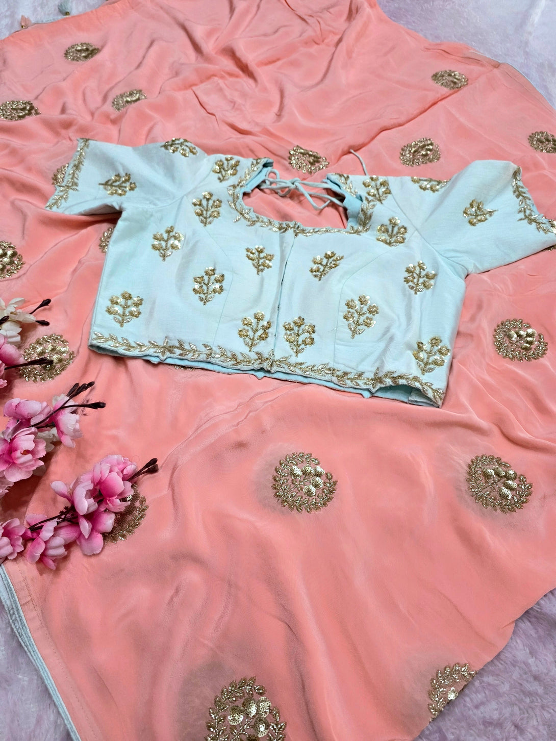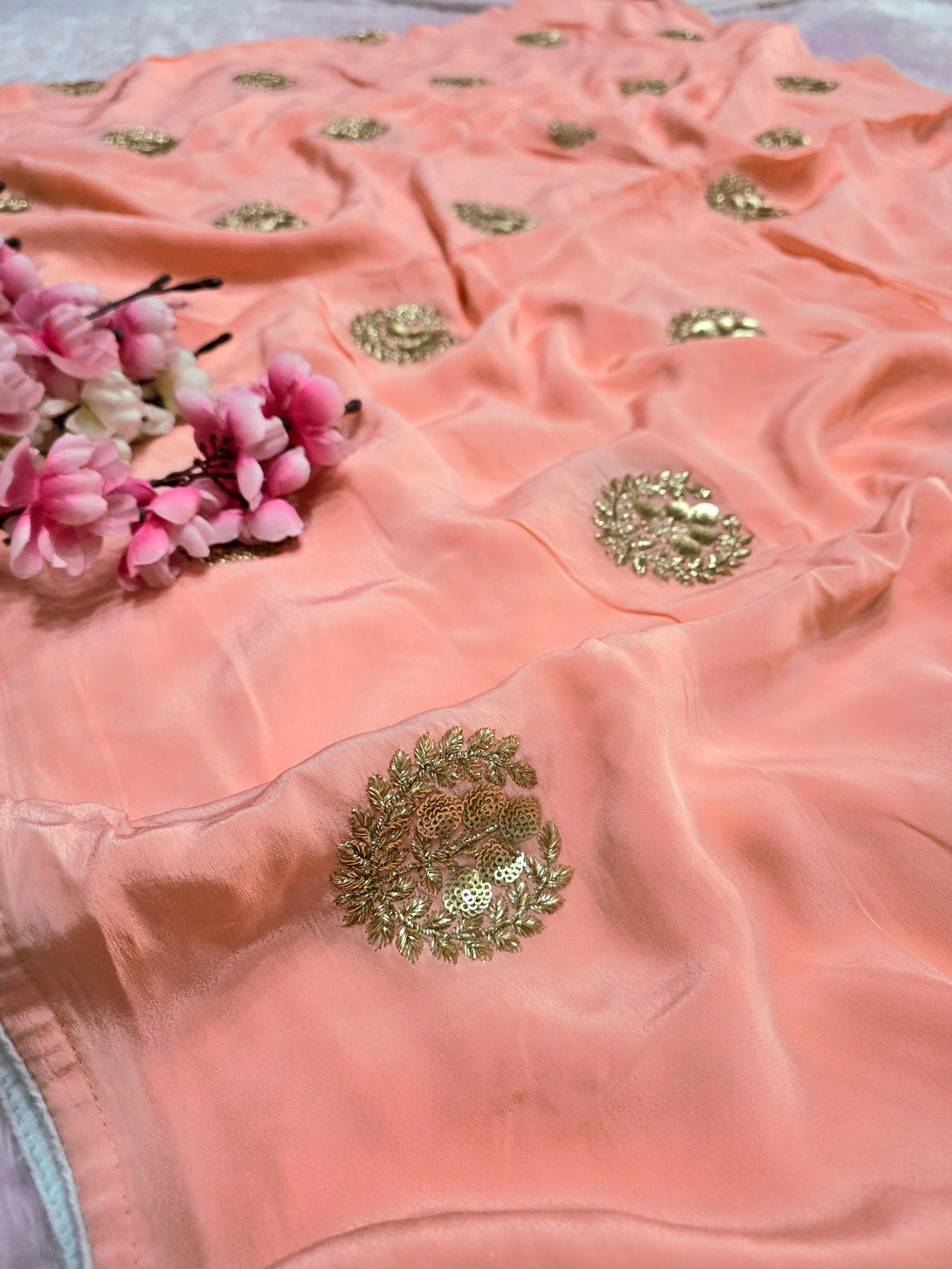 Pure Crepe Silk Designer Saree with Heavy Stitched Blouse